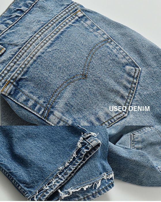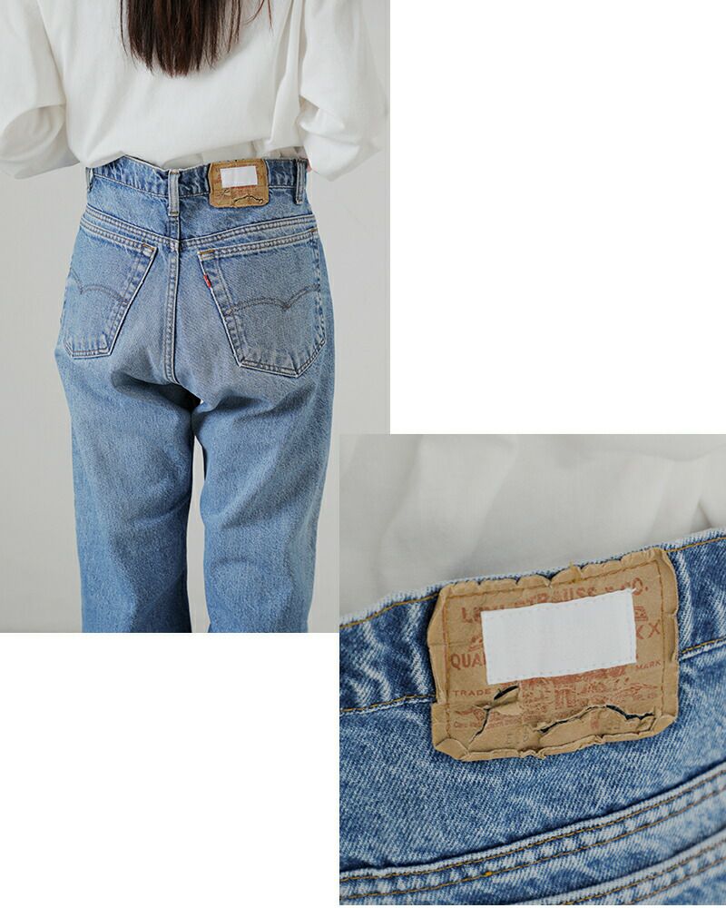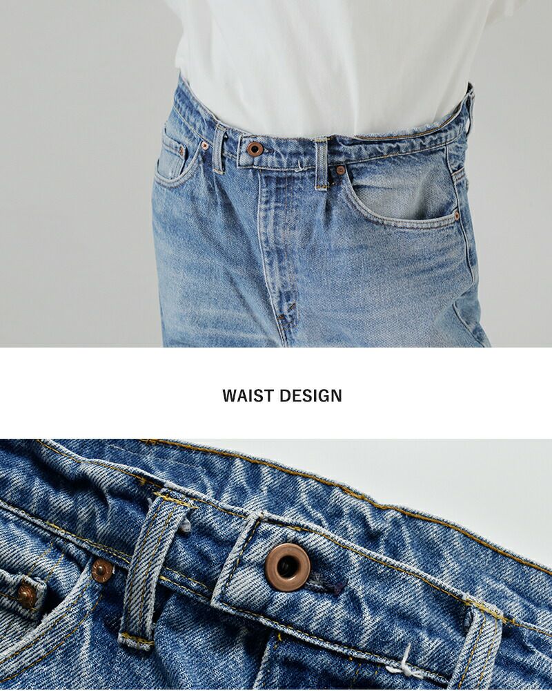 厚みのあるしっかりとしたデニム生地です。ユーズドらしい色落ち感、アタリが雰囲気よく、古着好きの方におすすめです。