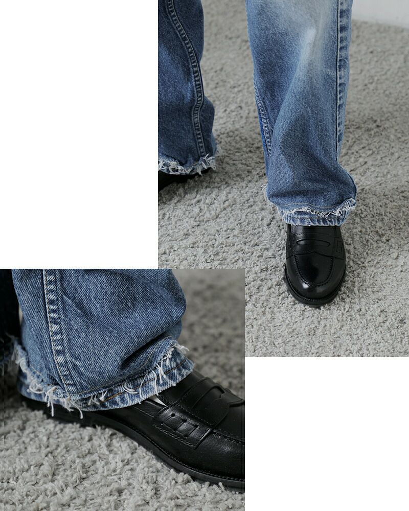 カットオフさせた裾に、アタリのある裾を重ね、生地を2重にした手の込んだつくり。