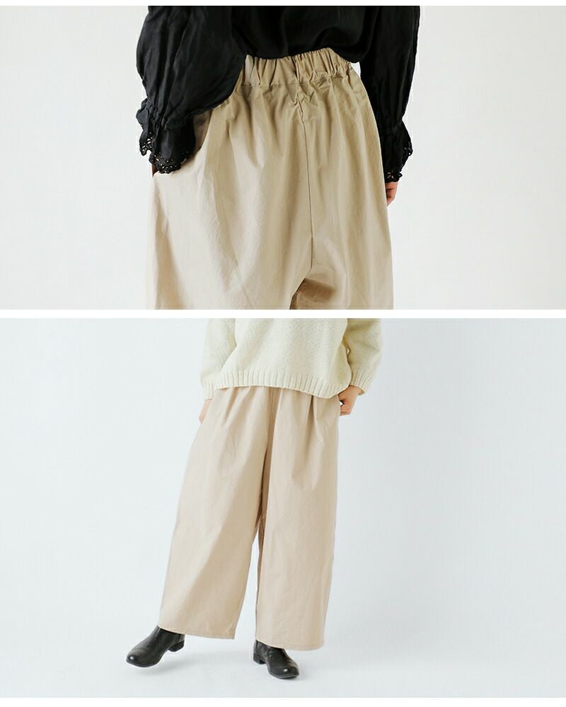 (g)(グラム)より、リラックス コットン ワイド パンツのご紹介です。ハリ感のあるコットン生地を使用した、ゆったりとしたシルエットのパンツ。ウエストにたっぷりとギャザーを寄せたボリューム感が着映えを叶えてくれるデザイン。シンプルなTシャツに合わせたり、ワンピースのインナーパンツとしてもおすすめ◎。簡単にオシャレ見えする一本です。