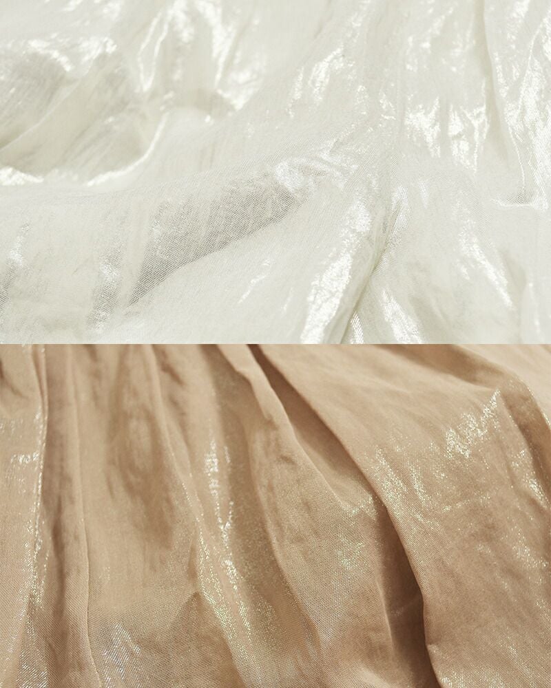 肌離れの良いコットンボイル。 箔の華やかさがありながらも、生地自体はドライでさらりとしているため、夏でも快適に過ごせます。デイリーな着心地と、ドレスアップしたような特別感を両立させた一着です。