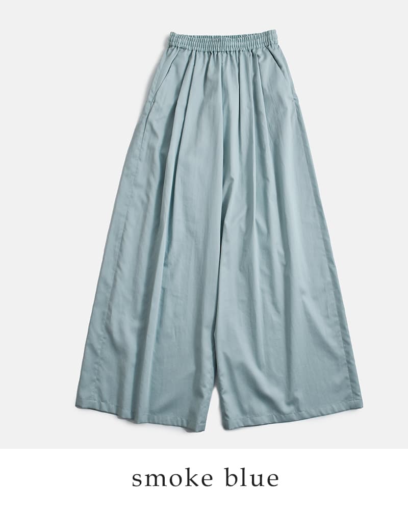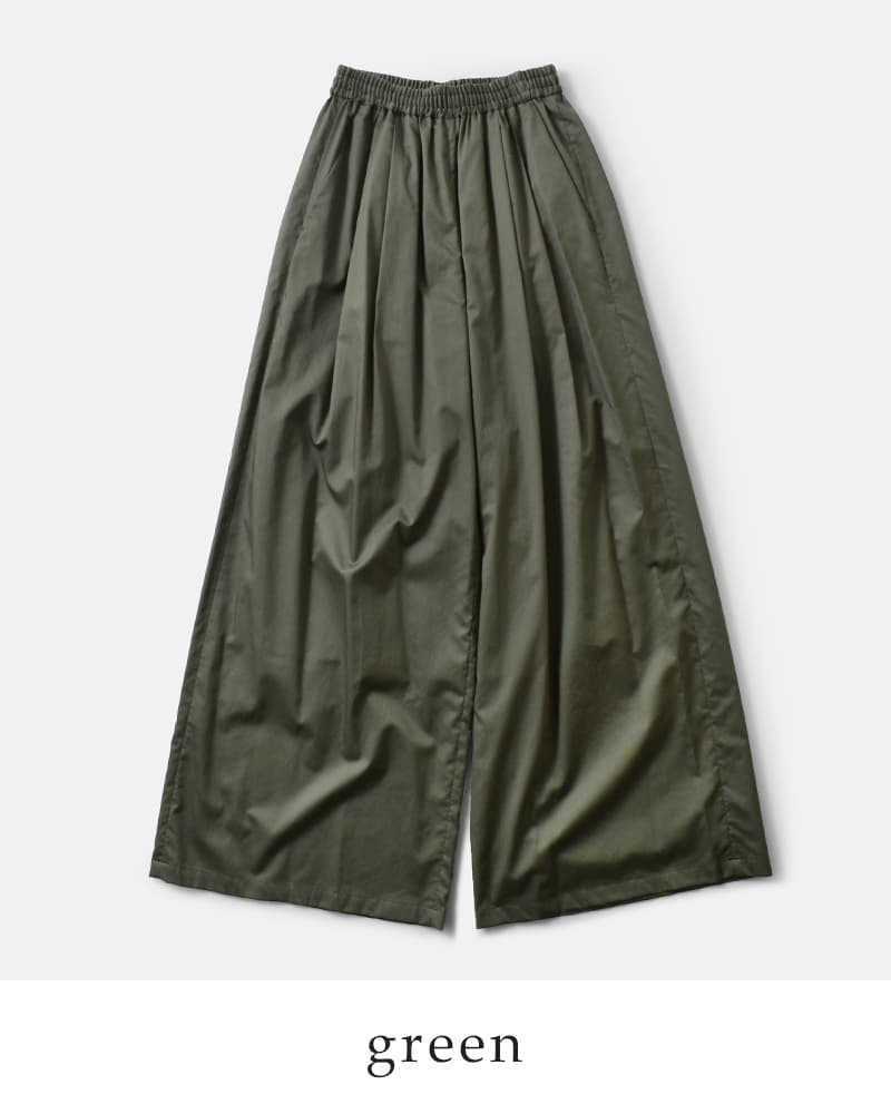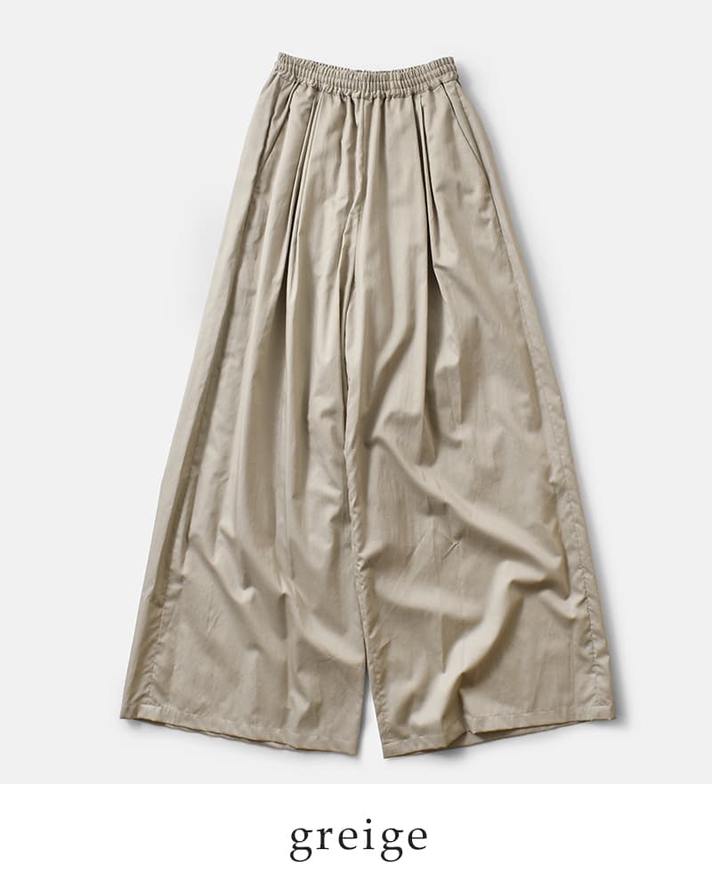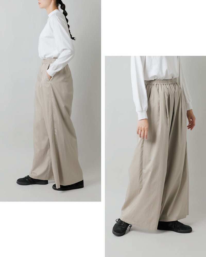 フロントに施された2本のタックが、腰回りに程よいボリュームを与えつつ、美しいシルエットを実現するワイドパンツ。歩くたびに美しく揺れる、たっぷりと使用した生地感が魅力。