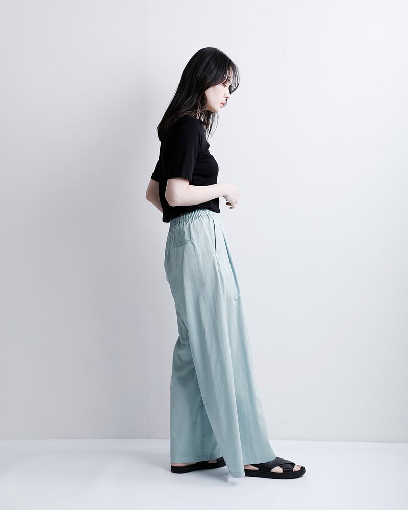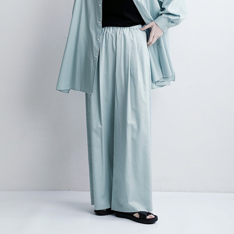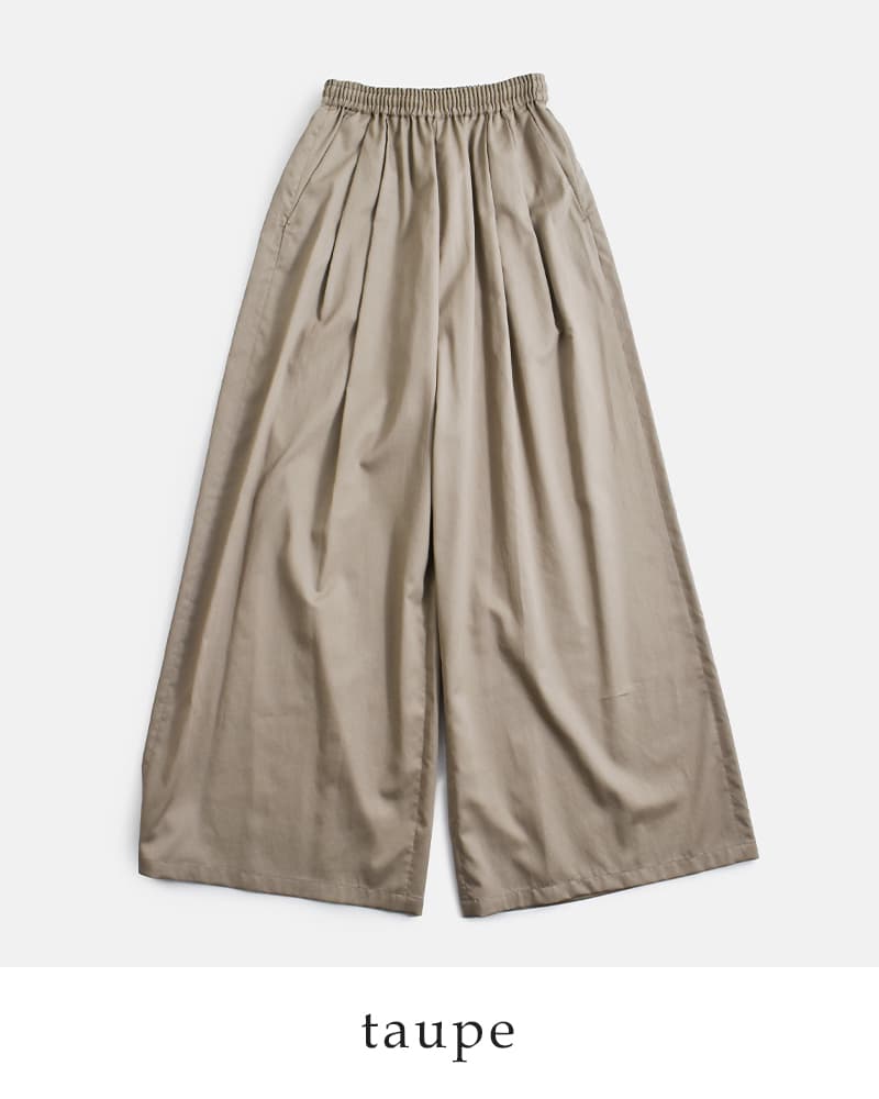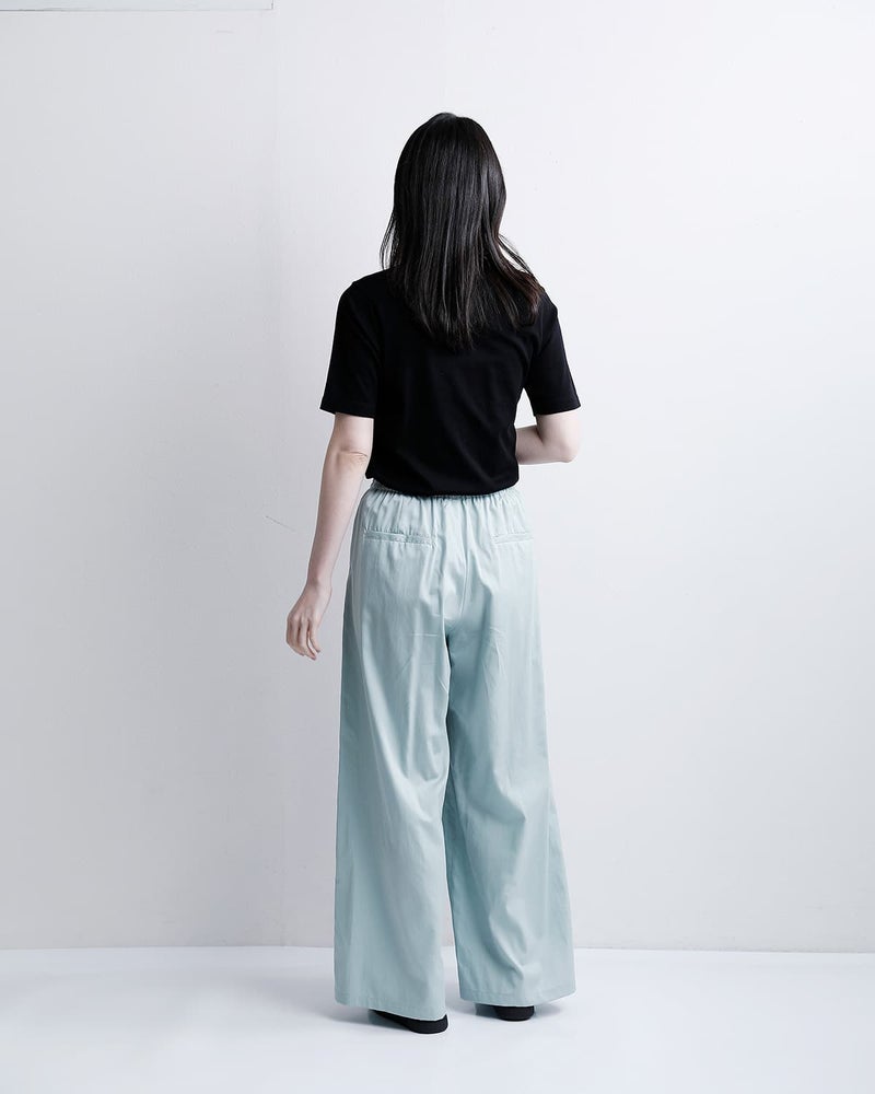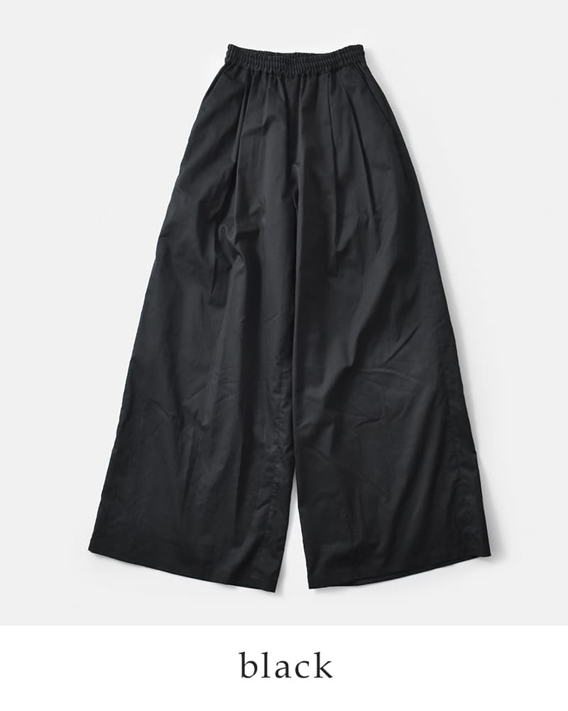 フロントに施された2本のタックが、腰回りに程よいボリュームを与えつつ、美しいシルエットを実現するワイドパンツ。歩くたびに美しく揺れる、たっぷりと使用した生地感が魅力。