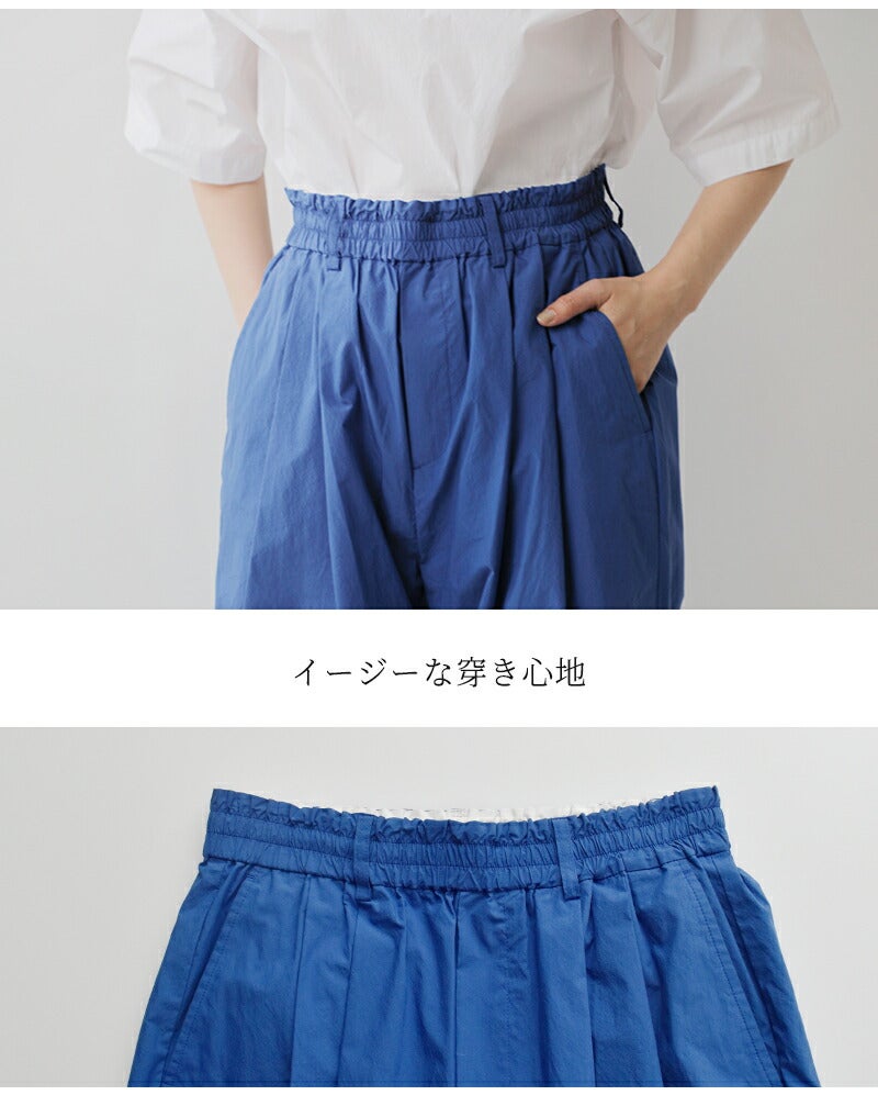 ウエストのタックからし膨らむシルエットが美しいレッグライン。ほどよくワイドに仕上げており、脚をすっきりと見せつつ、大人のリラクシースタイルを表現します。