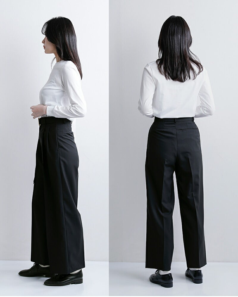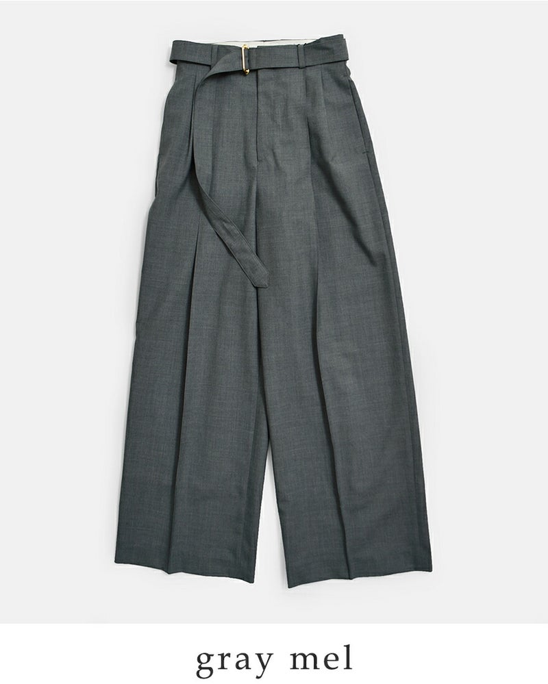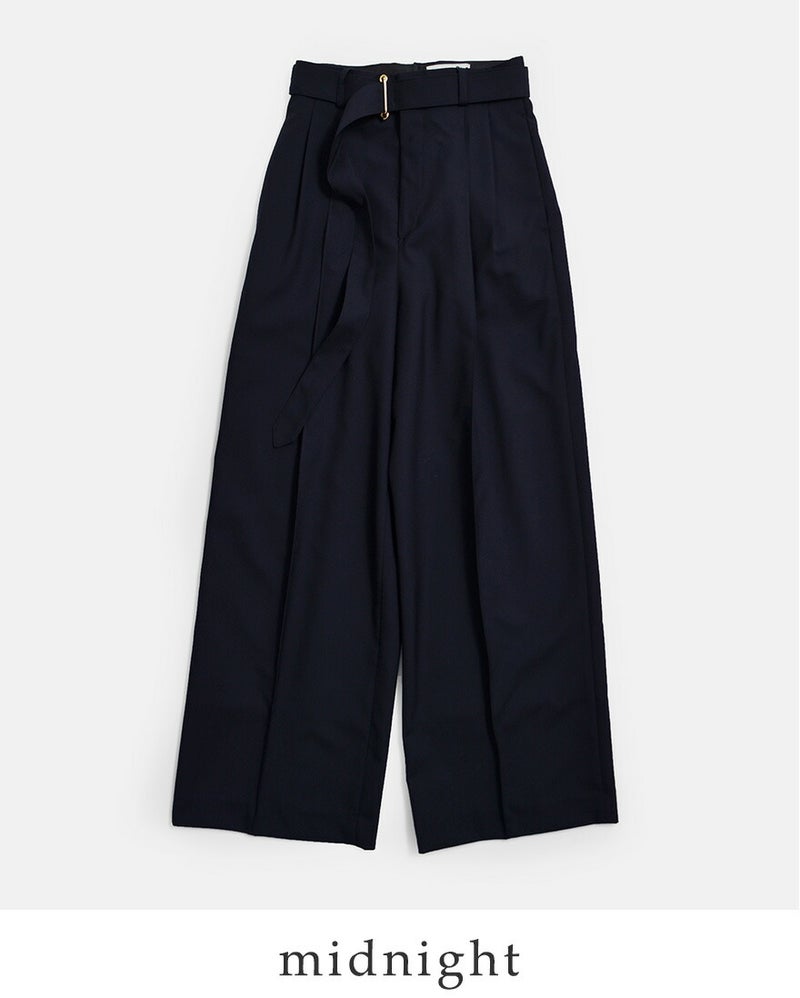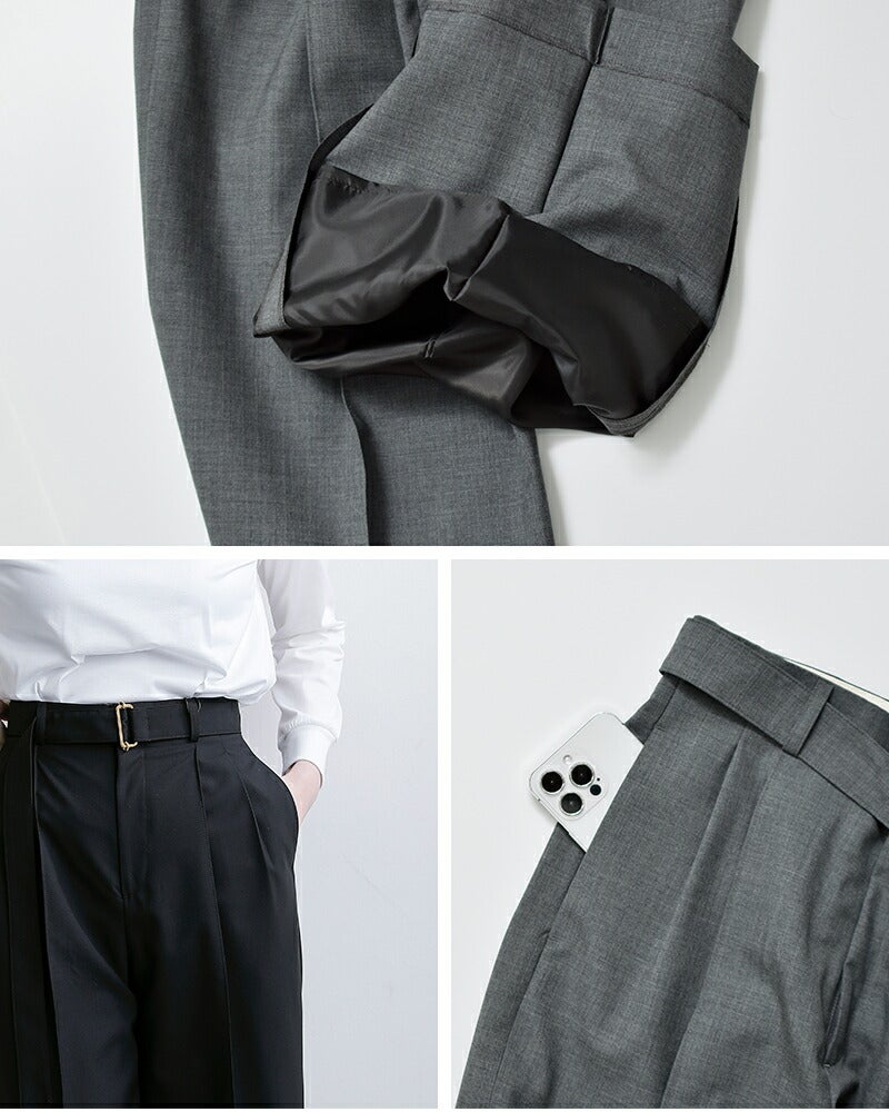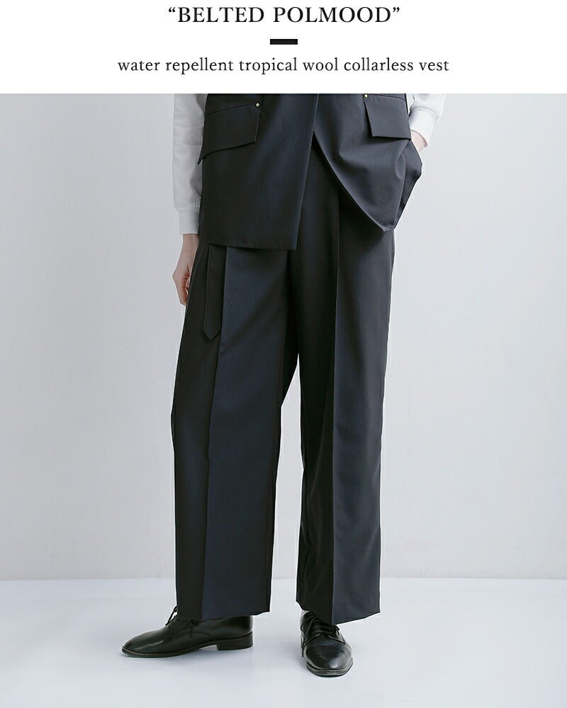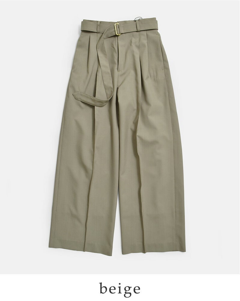撥水トロピカルウール ベルト付き ツープリーツ ワイドストレートパンツ “BELTED POLMOOD” l261hi1019pdy