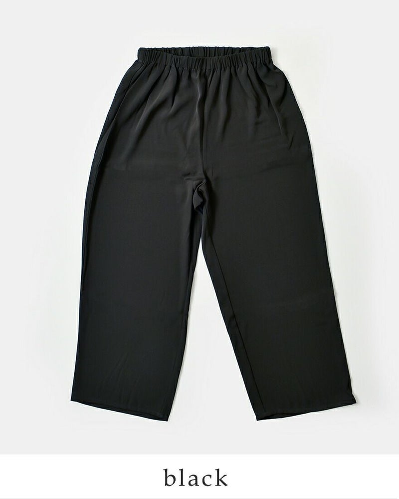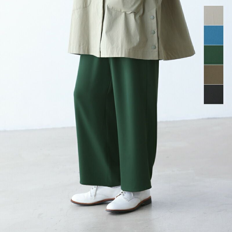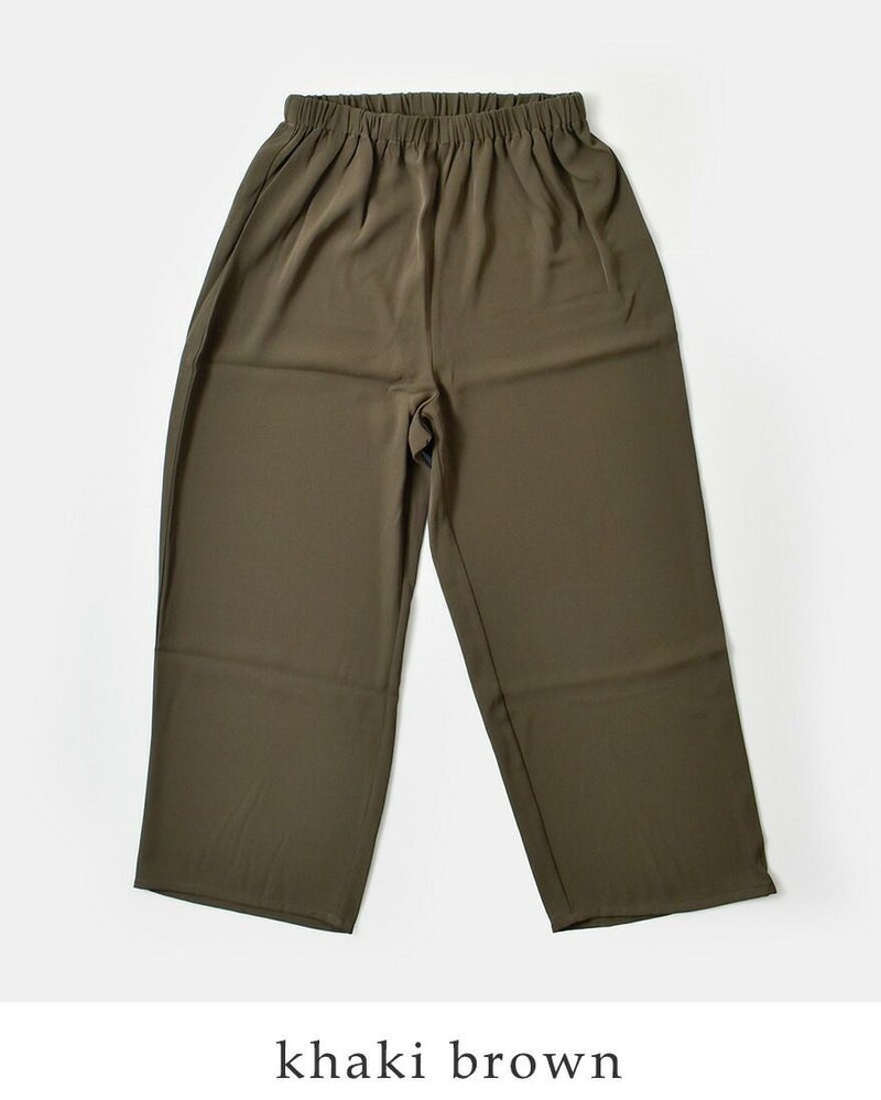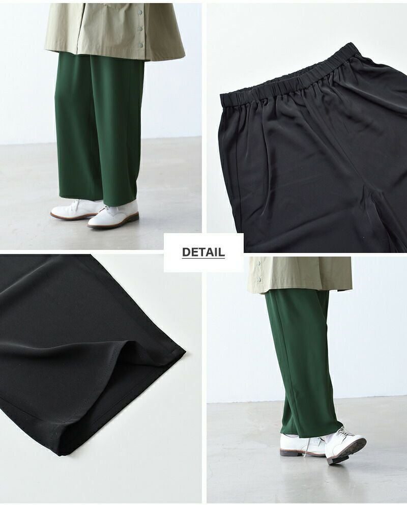 とろみのあるポリエステル素材は、美しい落ち感があり、動くたびにきれいなシルエットを演出。きれいめにもカジュアルにもマッチし、シンプルなトップスと合わせるだけでなく、チュニックやワンピースのレイヤードスタイルにもぴったり。デイリーに気軽に穿けて、着こなしの幅がぐんと広がる1本です。