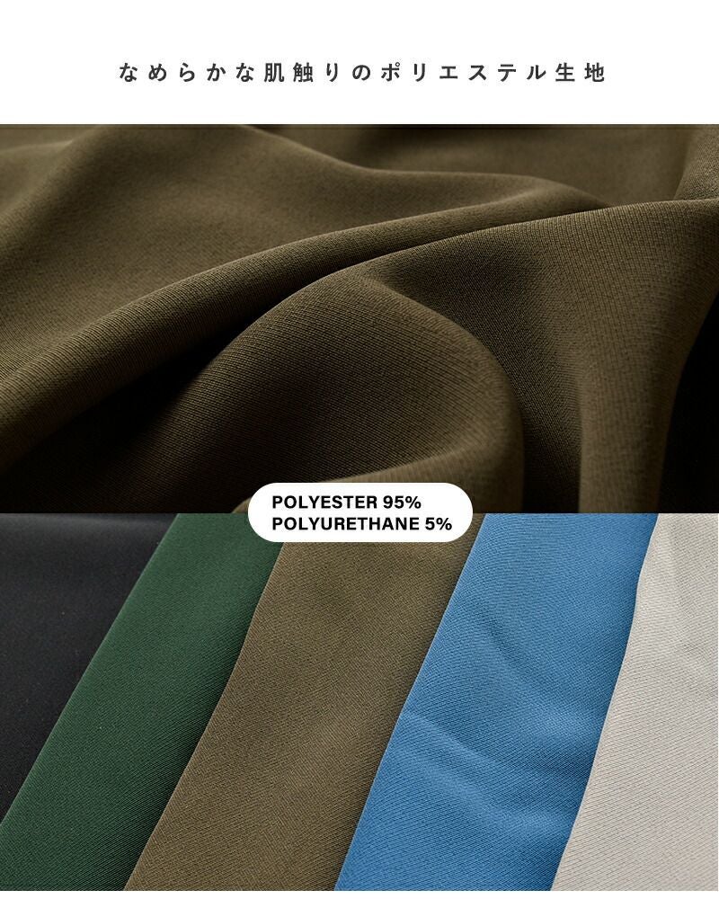 なめらかなポリエステル生地を使用。とろみのある質感は、肌に心地よく触れるだけでなく、動きに合わせて美しいドレープを生み出します。