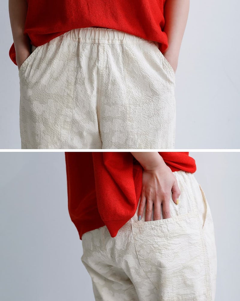 ordinary fits定番のランチパンツをベースに、フラワーカモ柄とレオパード柄で仕上げたイージーパンツです。