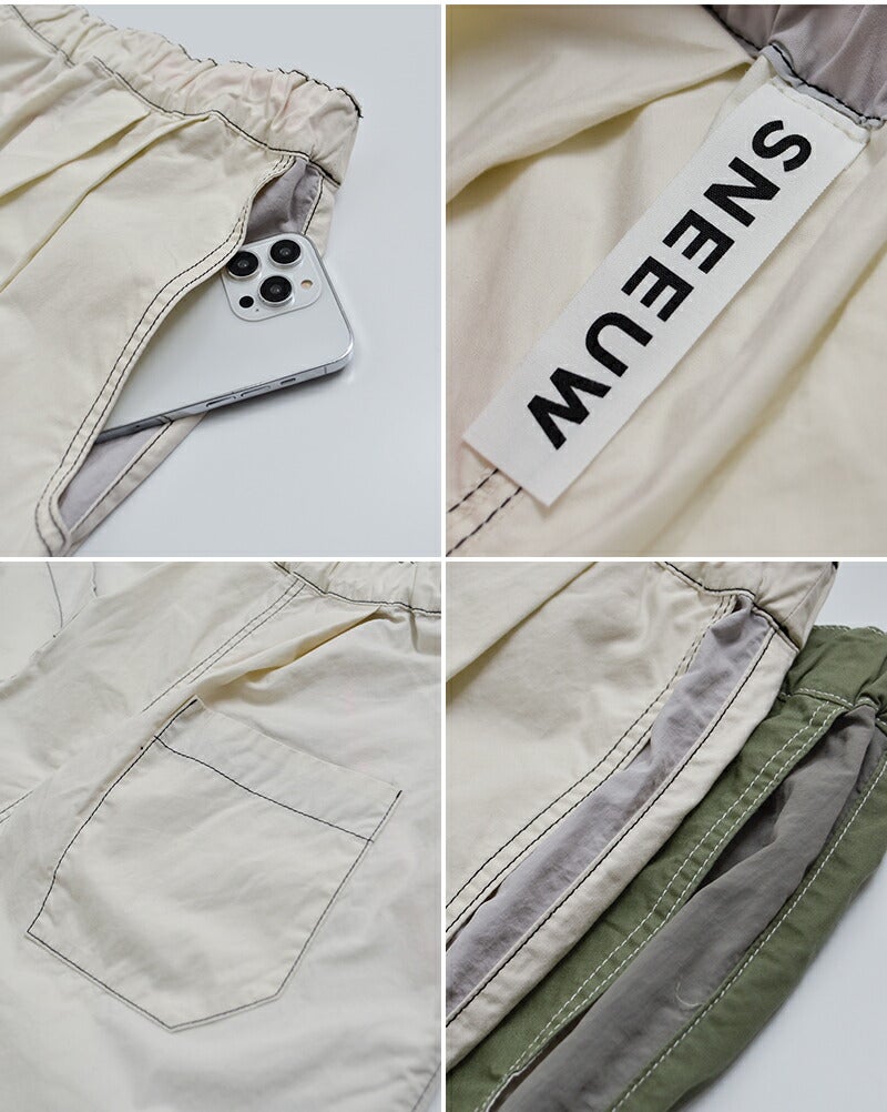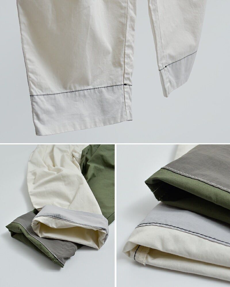 裾の裏側にはナイロン素材をあしらい、ロールアップした際にさりげないアクセントに。気分やスタイリングに合わせて折り返すことで、軽やかな印象のアレンジも楽しめます。