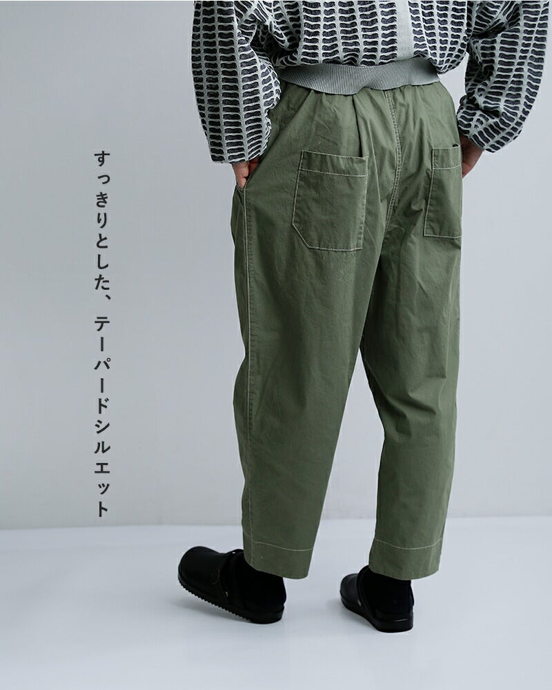腰まわりにゆとりを持たせつつ、裾にかけて緩やかに細くなるテーパードシルエット。リラックス感のある穿き心地ながらも、ダボつきすぎずすっきりとした印象で着用いただけます。