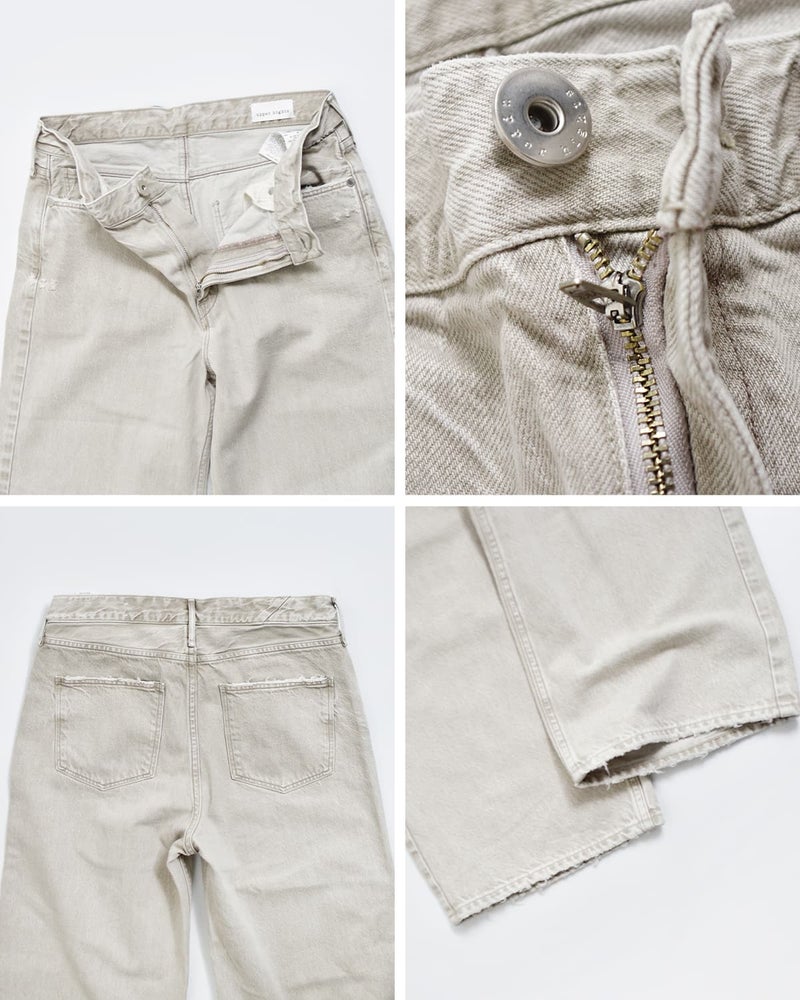 upper hightsのノンストレッチミッドライズワイド「THE NIECE MID RISE」。人気モデルTHE NIECEをベースに、ミドルライズ仕様へと改良し、細部を微調整した一本です。自然なヴィンテージ感を追求して開発された生地は、古着のようなシボ感とタテ落ち感を表現。シンプルなデザインながらも、穿くだけで雰囲気が生まれるのが魅力です。ミッドライズにすることで挑戦しやすく、トップスとのバランスも取りやすい仕上がりに。季節を問わず着まわせる、スタイリングの軸になるデニムです。