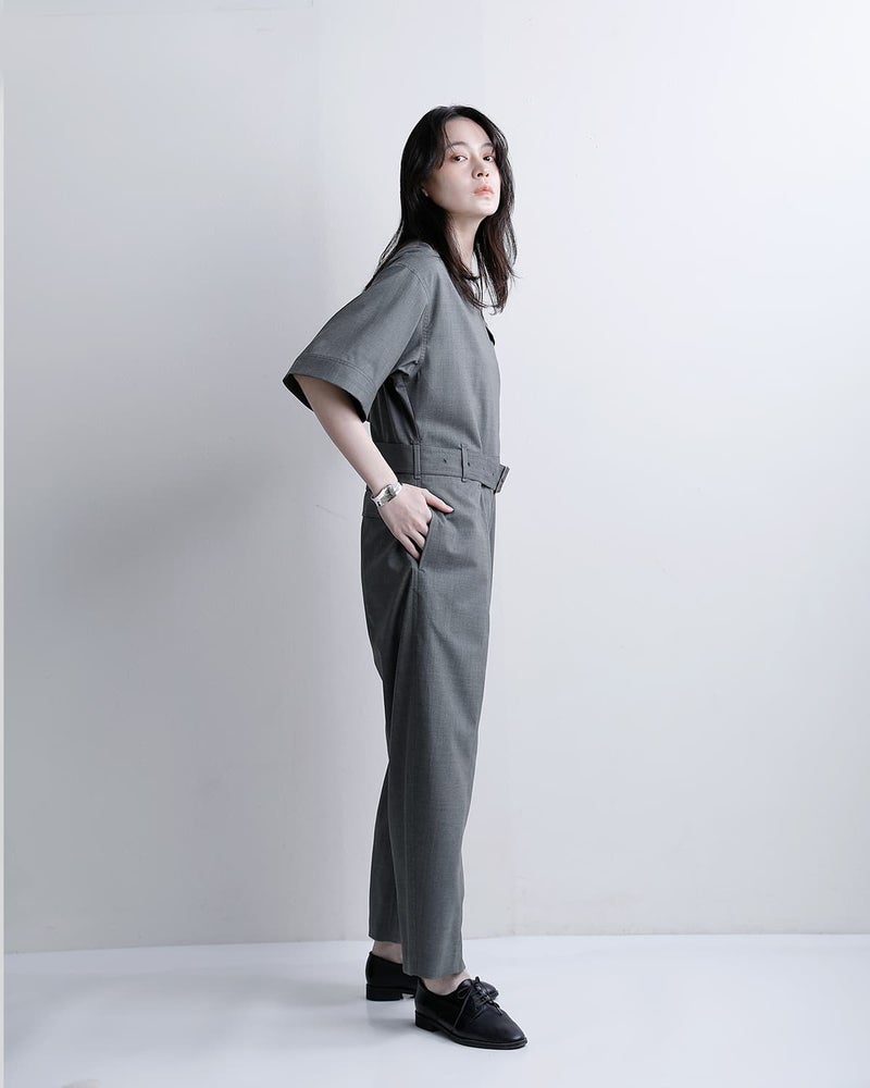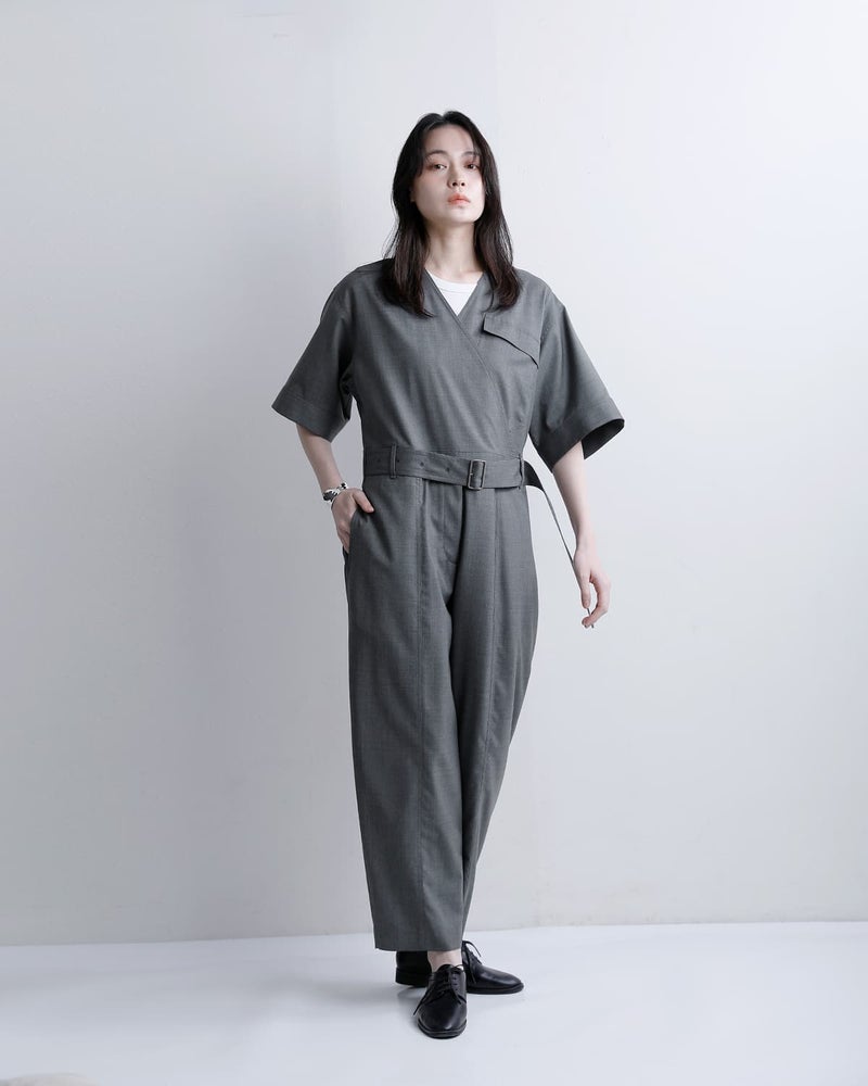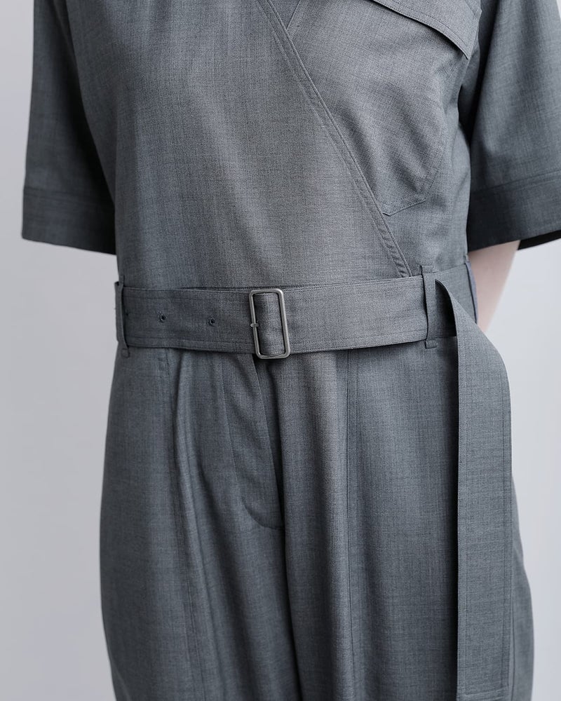スーパー120sウールを使用し、ワークウェアのイメージではなく、スーツ地のような上品な質感で格上げした、大人のためのオールインワンです。