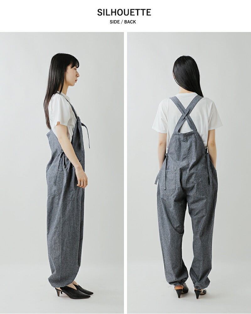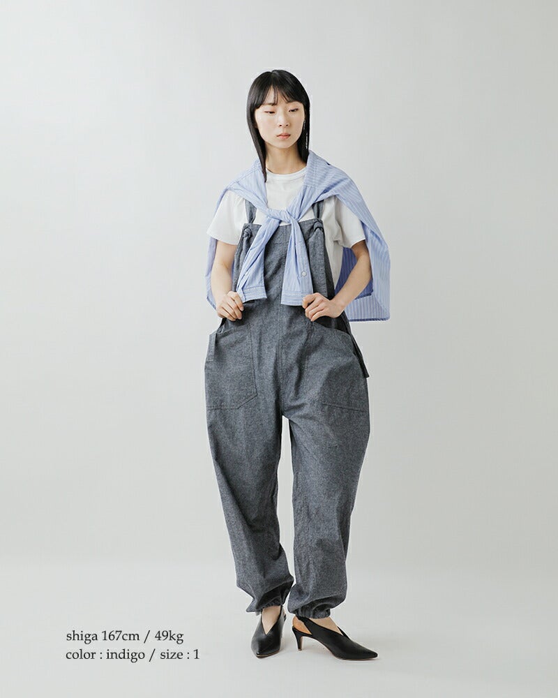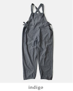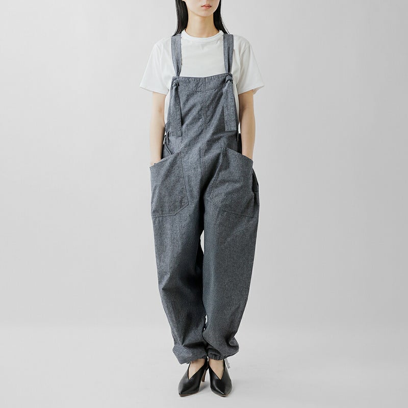 ゆったりとしたリラクシンなムードのサロペット。縦のラインを意識したシルエットで、女性らしくすっきりと着ることが出来ます。