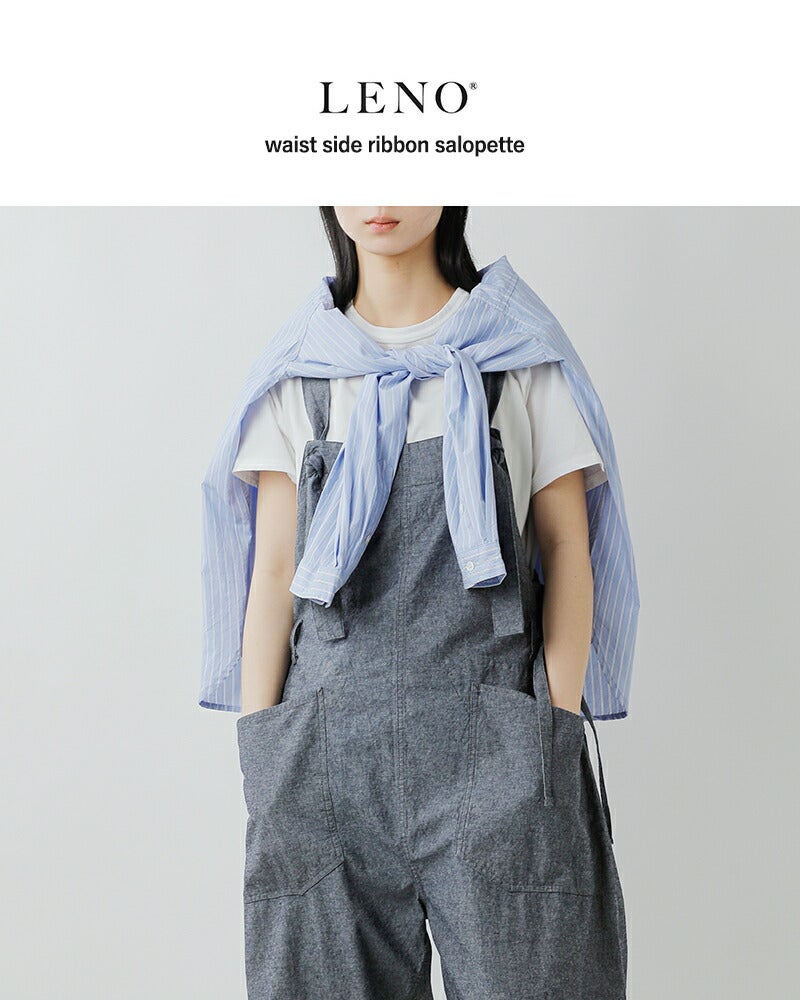 LENO(リノ)より、コットン ウエストサイドリボン サロペットをご紹介します。ウエストのサイドリボンと裾のシャーリングデザインでさり気なくフェミニンな雰囲気をプラスしたオーバーオール。タンクトップなどで肌が見える分量を多めにすると女注らしく、Tシャツと合わせればボーイズライクな印象に。肩ひもは結び目を変えることができるので、自分好みの着丈バランスを楽しむことができます。