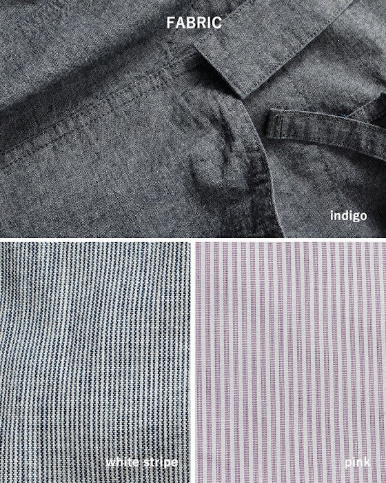 軽く織り上げたヒッコリーストライプの生地。薄手でさらりとした生地で、春夏らしい爽やかな印象です。