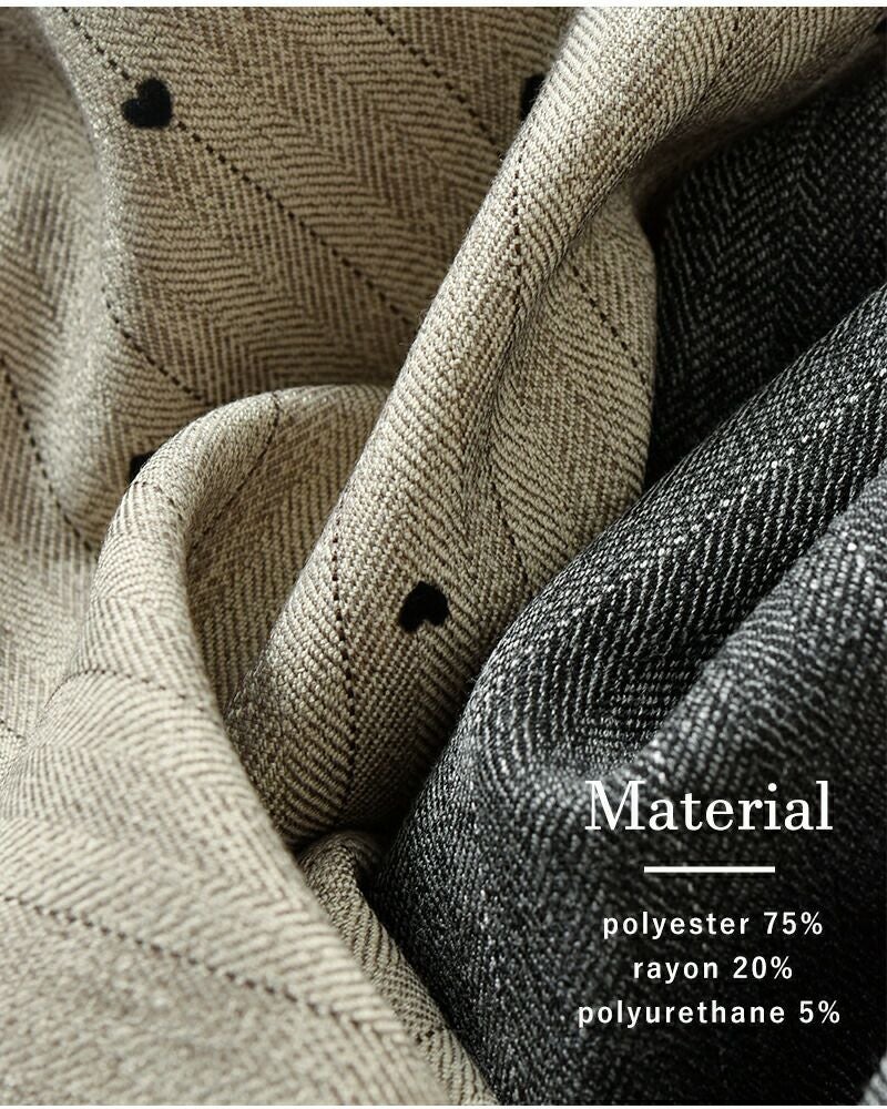 くったりとした柔らかさがあり、ヘリンボーンがあたたかみのある風合いです。Beigeの色展開のみ、フロッキープリントでハートを施しているのも乙女心をくすぐるポイント。