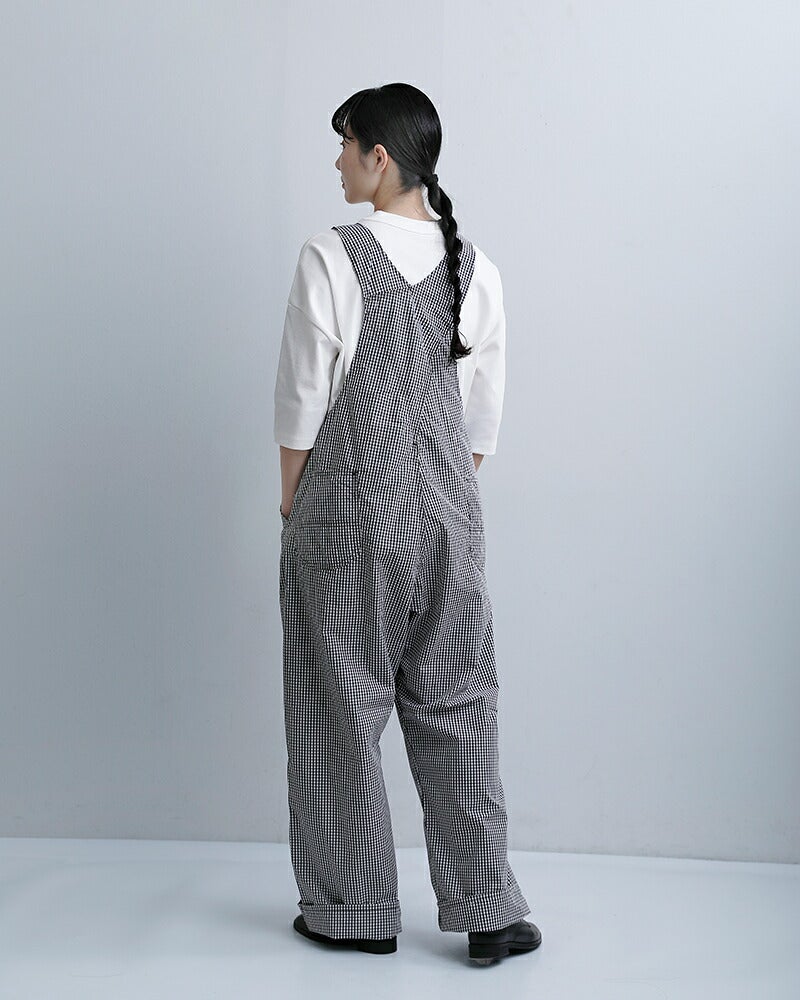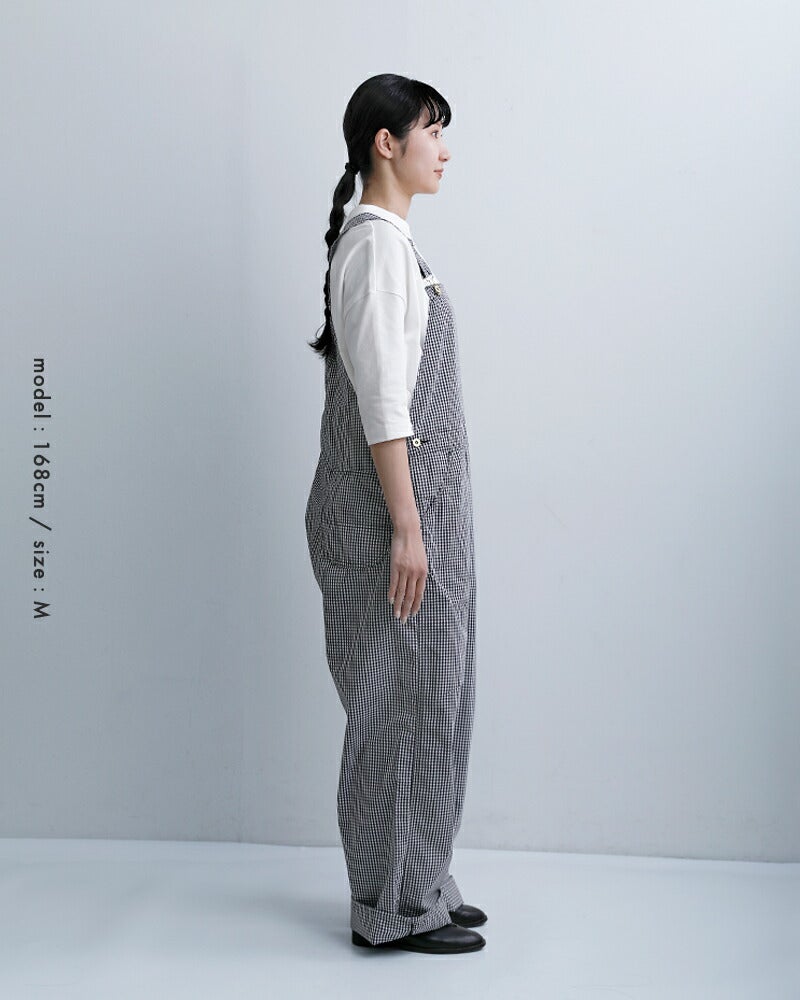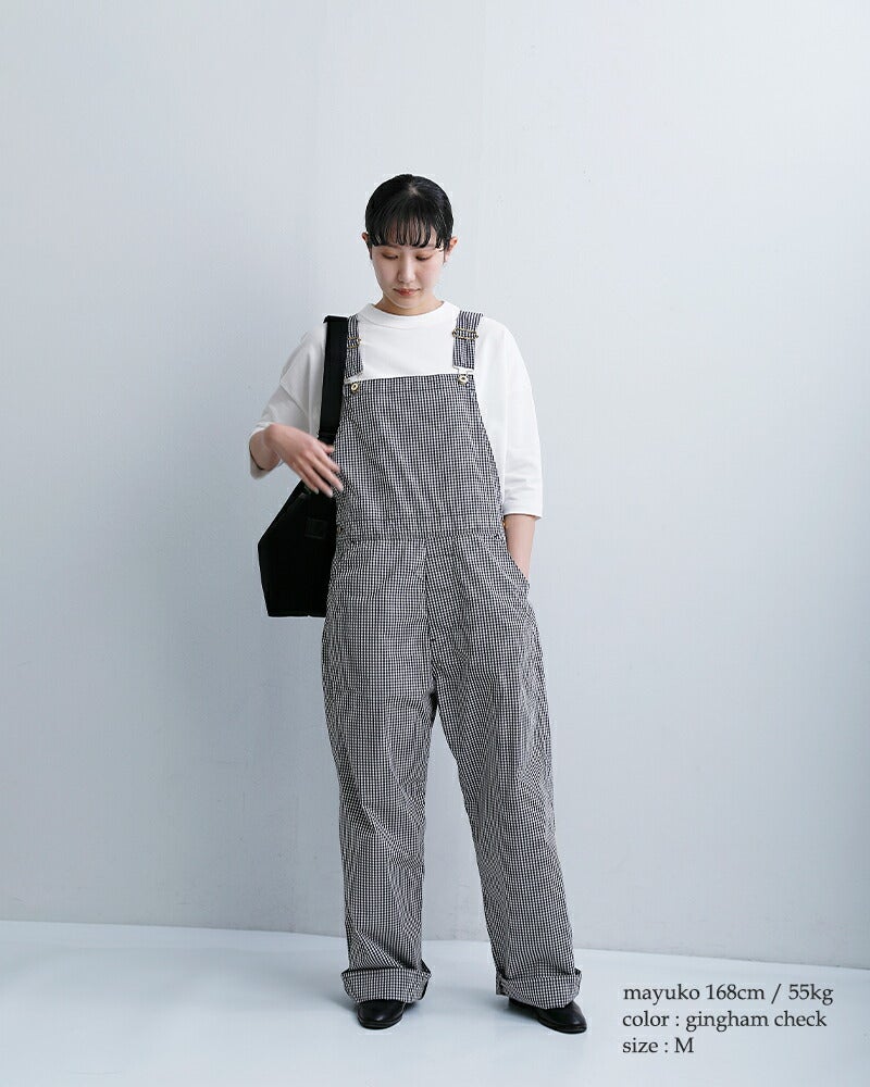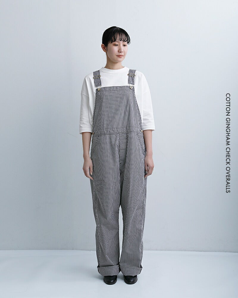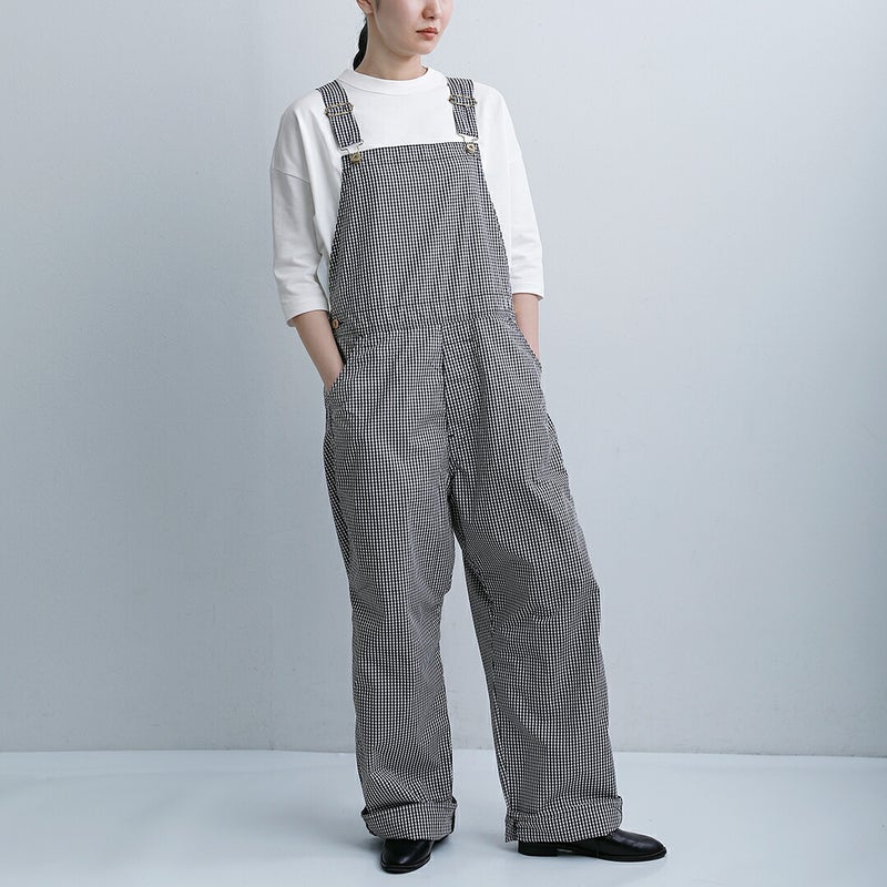 軽やかなギンガムチェックと絶妙なシルエットで、ラフさの中に上品さをプラス。カジュアルにもきれいめにも馴染み、幅広いスタイリングに活躍する大人のオーバーオールです。