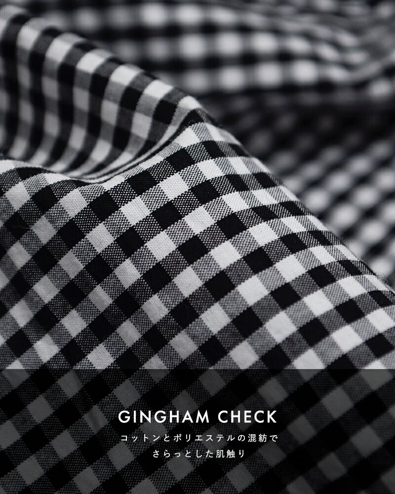 コットンとポリエステルの軽やかな風合いの生地。大人でも取り入れやすいギンガムチェックが印象的です。