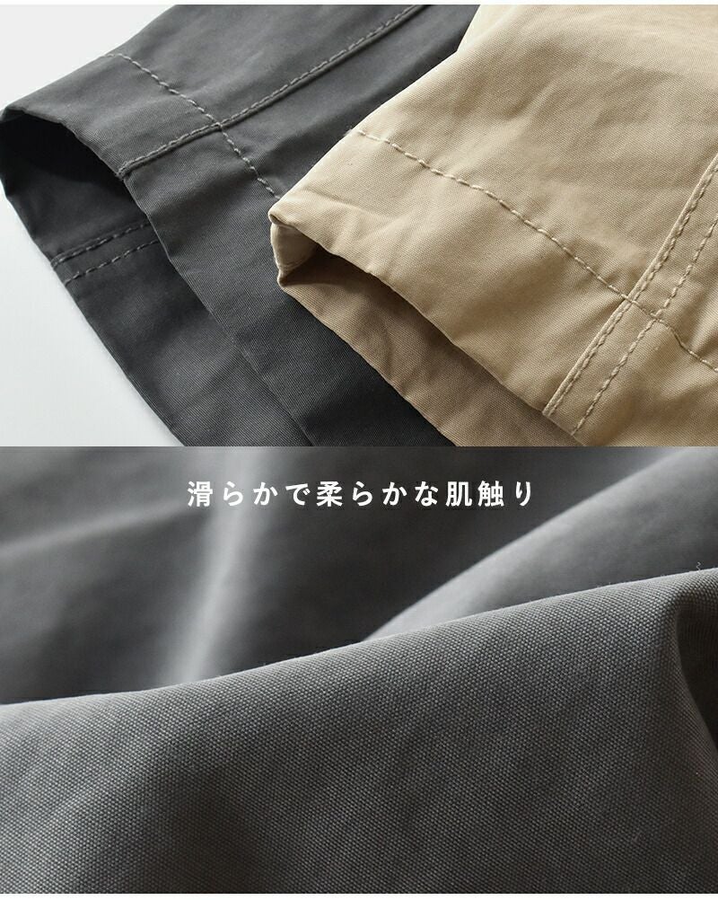コットンのナチュラルな風合いと、ナイロンの軽さ・耐久性を組み合わせた生地を使用。