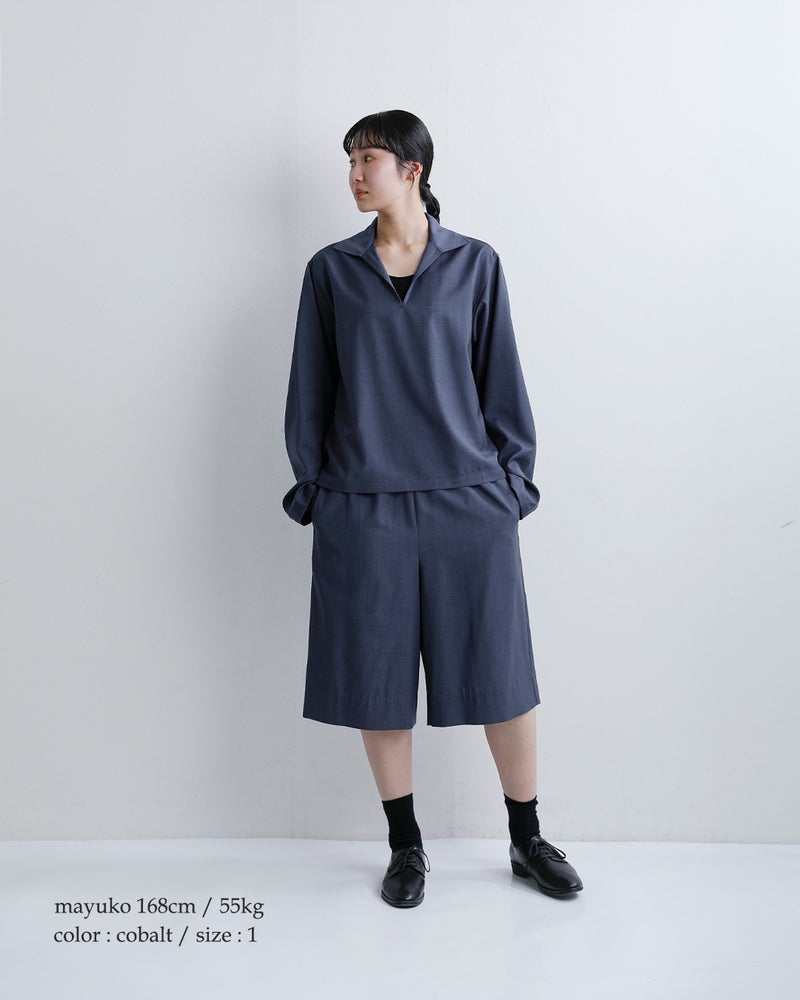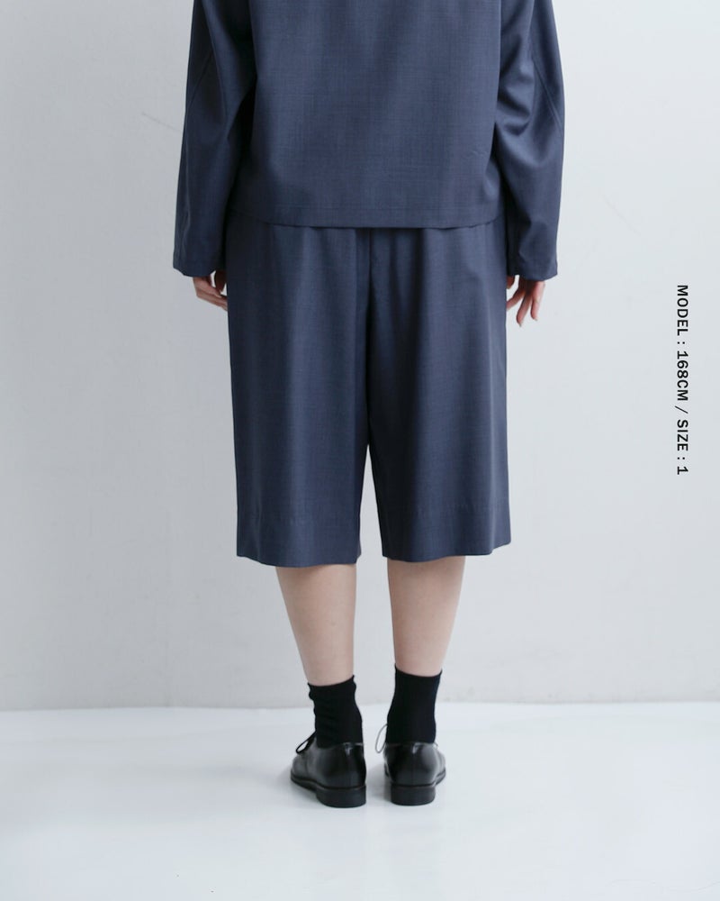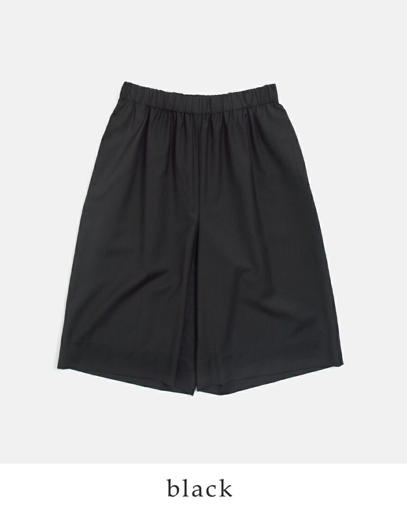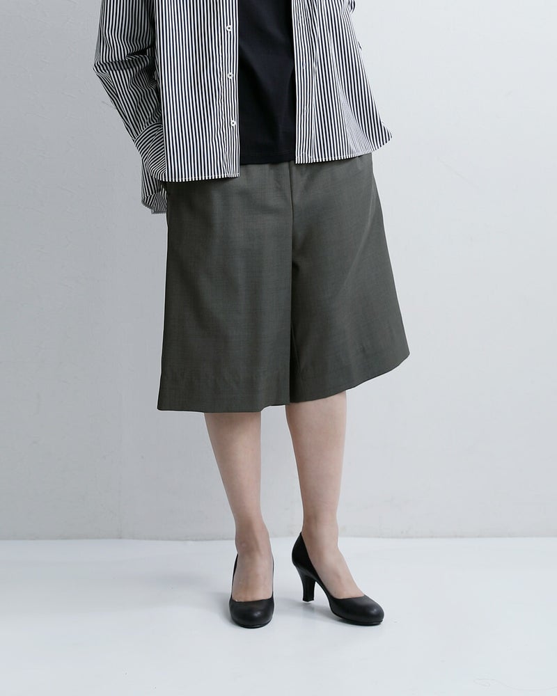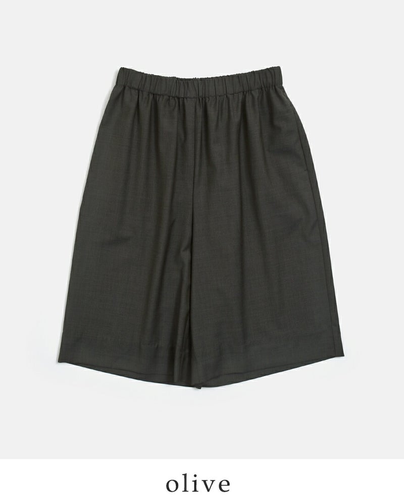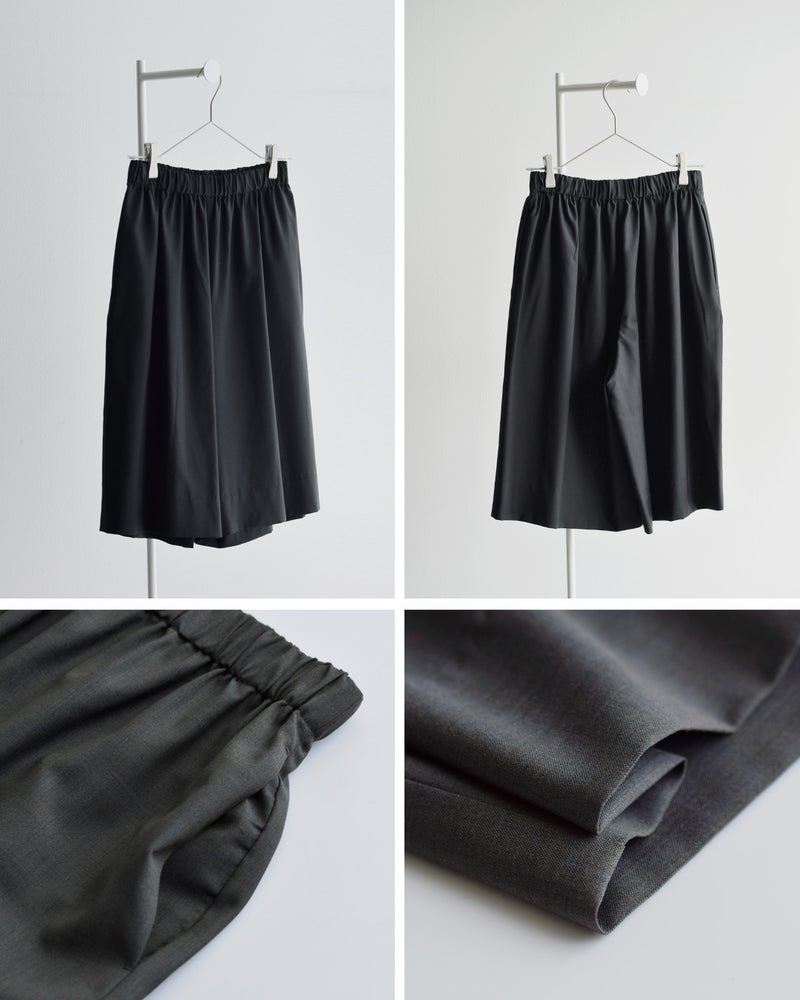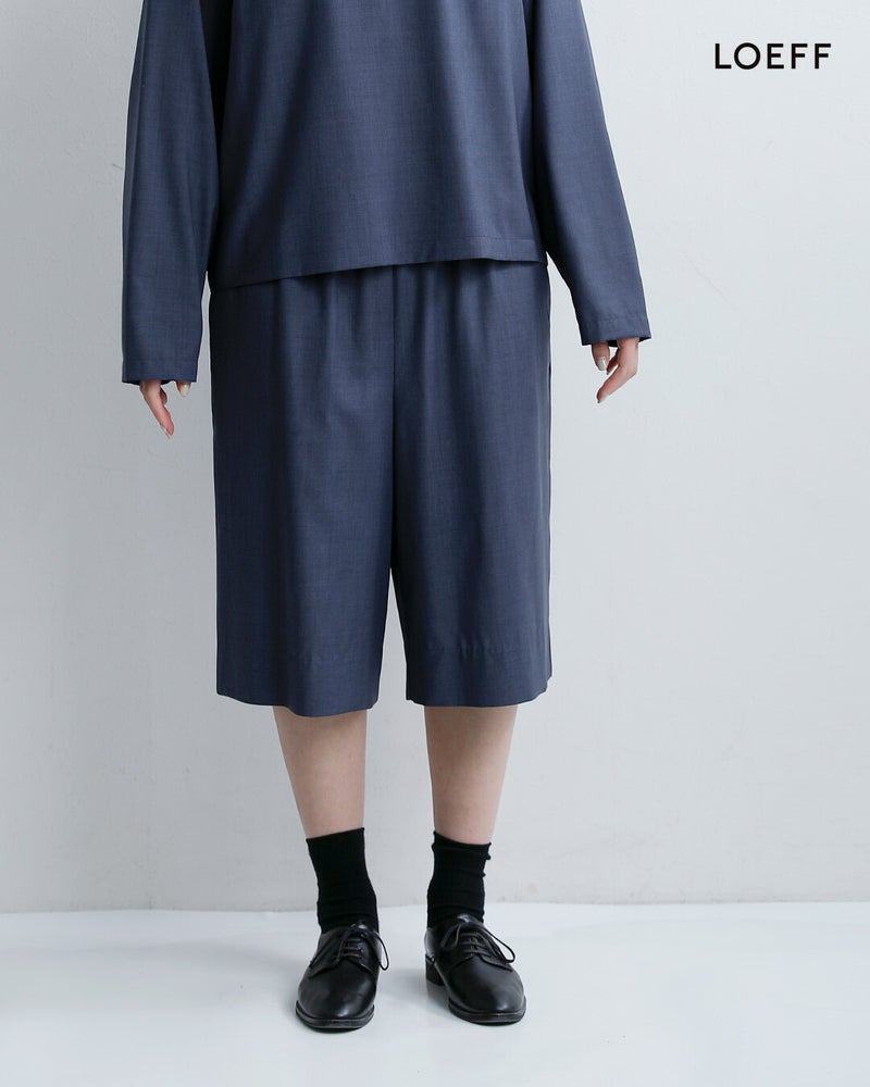 LOEFF(ロエフ)より、ウールトロキュロットパンツのご紹介です。イタリアREDA社のしなやかなウールトロ素材は、薄手で軽やか、しなやかでいて防シワ性にも優れた、極上のサマーウール素材です。ウエストゴムでリラックス感のある膝丈ショーツは、素材の高級感もありつつ夏の着こなしに活躍するお勧めボトムです。同素材のトップスとのセットアップもお勧めです。