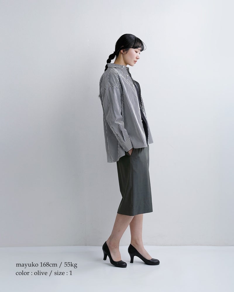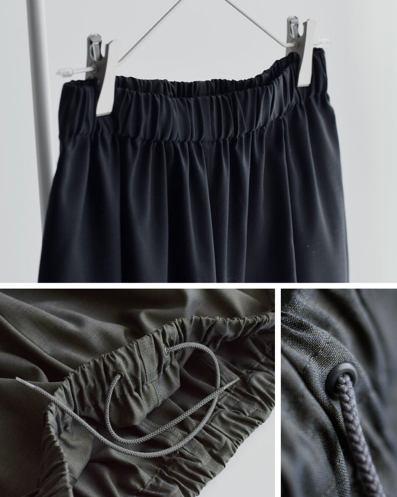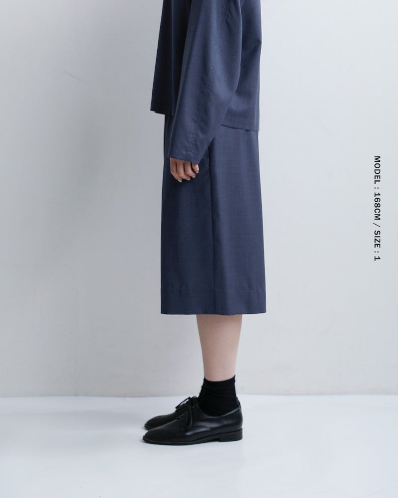 膝下まで届く絶妙な丈感と程よいボリュームが、スカートのような上品さとパンツの動きやすさを兼ね備えます。