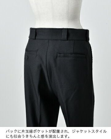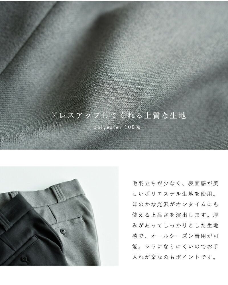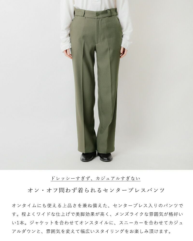 Shinzone(シンゾーン)より、センタープレスパンツをご紹介します。マニッシュな雰囲気で、オンオフ問わず使えるセンタープレス入りのパンツ。ややワイドなシルエットで、ストレートのラインが美しく、美脚効果のしっかりあるパンツです。ジャケットやパンプスを合わせたきれいめスタイルの他、スニーカーやTシャツを合わせてカジュアルダウンしたスタイルにも合わせやすく、スタイリングでアレンジしやすい一本となっています。