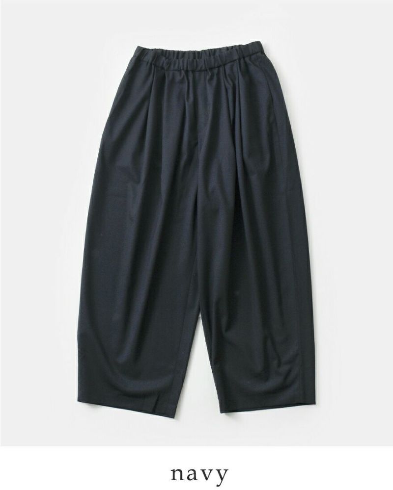 落ち度のある生地が、ウエスト下のタックをより引き立ったきれいめな表情に仕上げています。