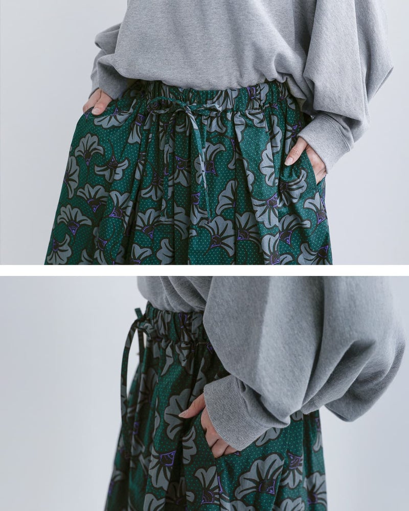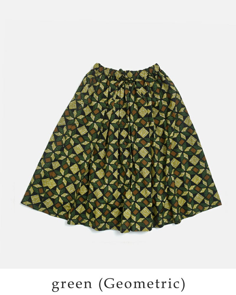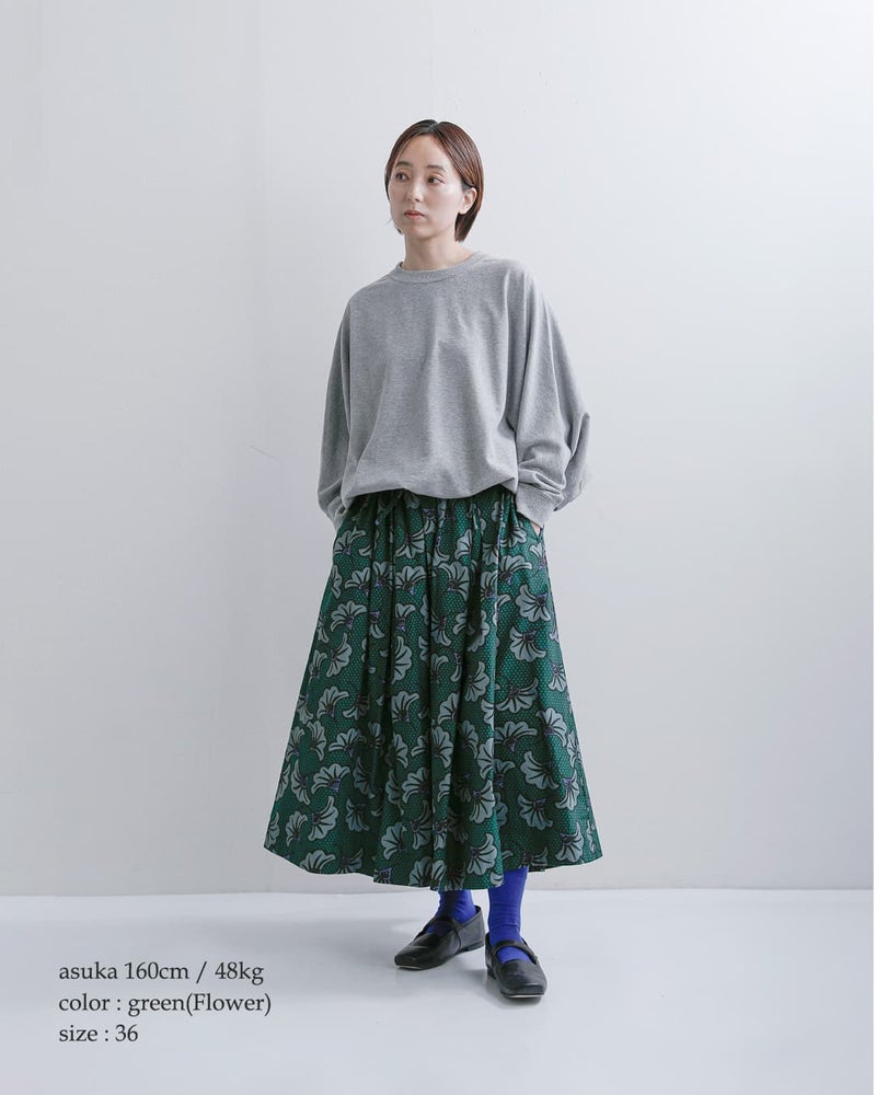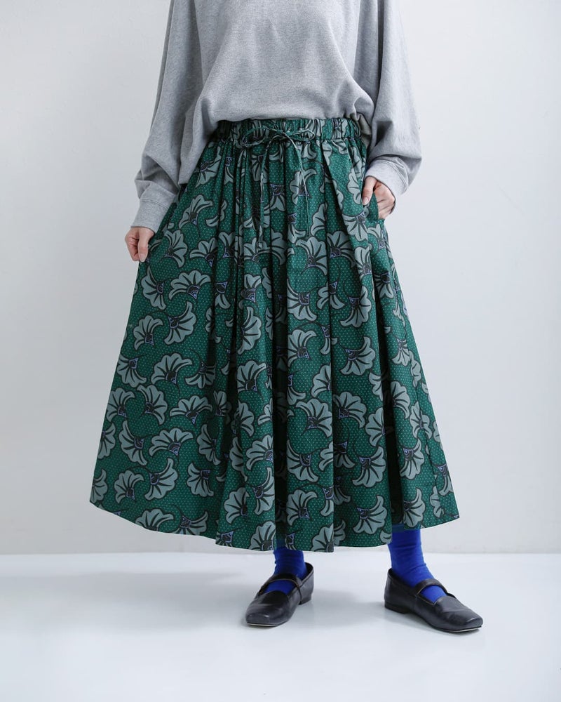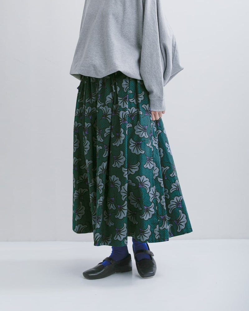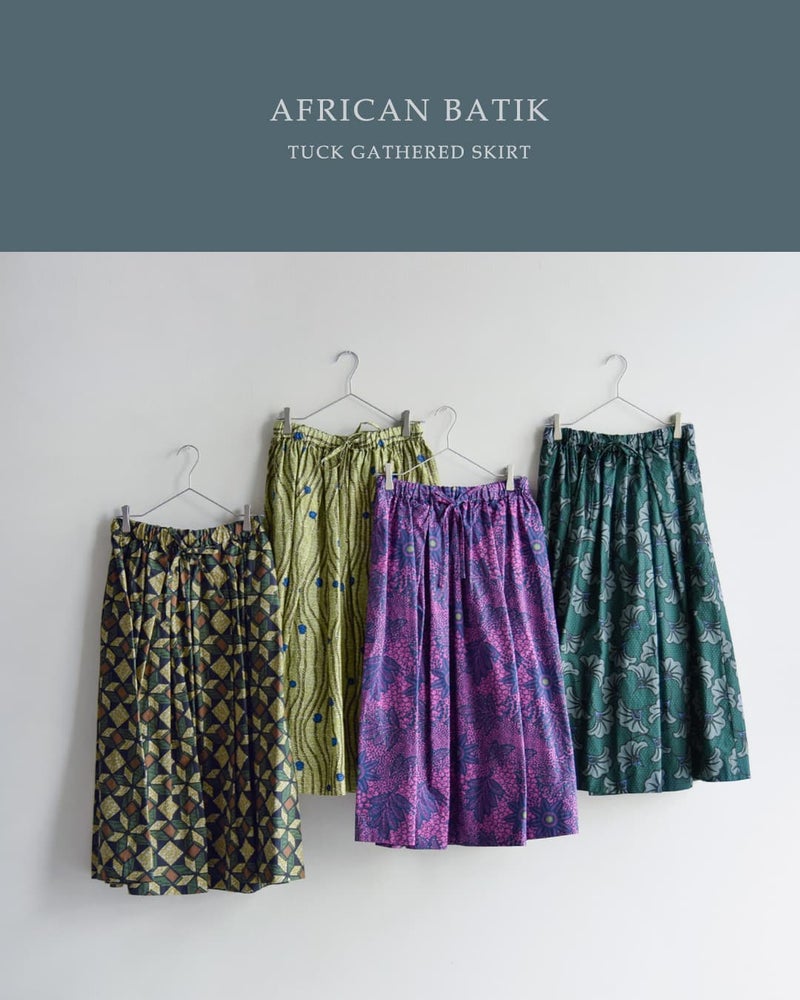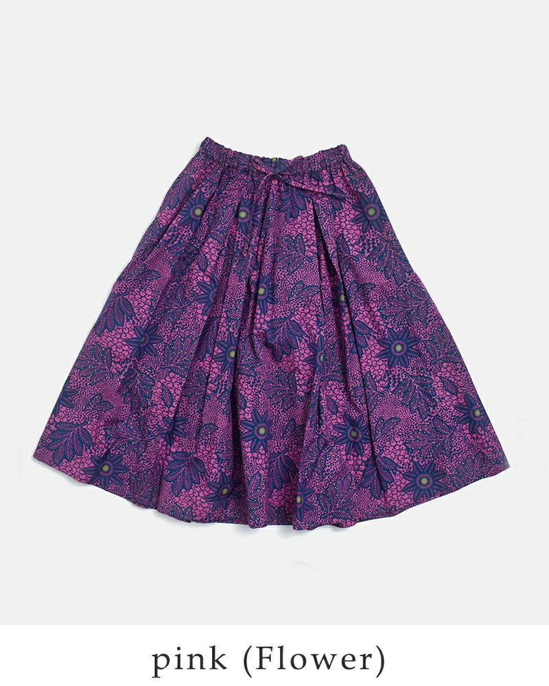 コットン バティックプリント タック ギャザー スカート lg-f0076btk-26ss