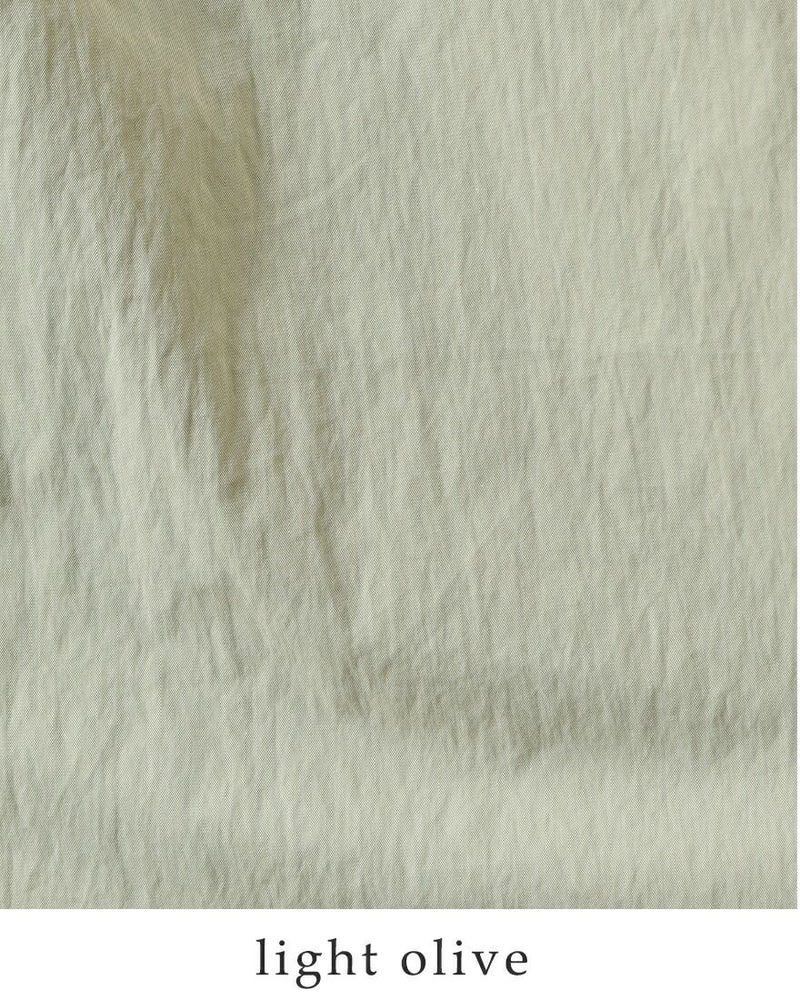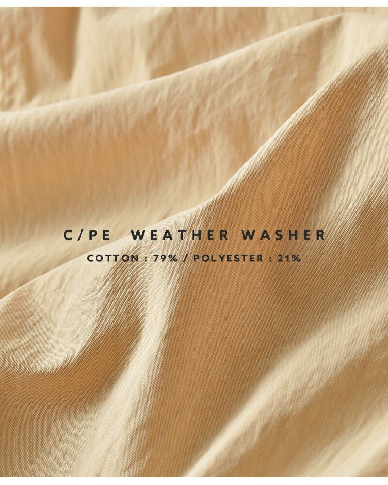コットン 79% / ポリエステル 21% 素材には、ワッシャー加工を施した綿×ポリエステルのライトウェザー生地を使用。ナチュラルなシワ感と軽やかな着心地が魅力で、ロングシーズン快適に着用できます。