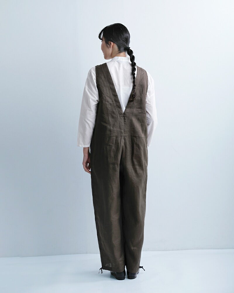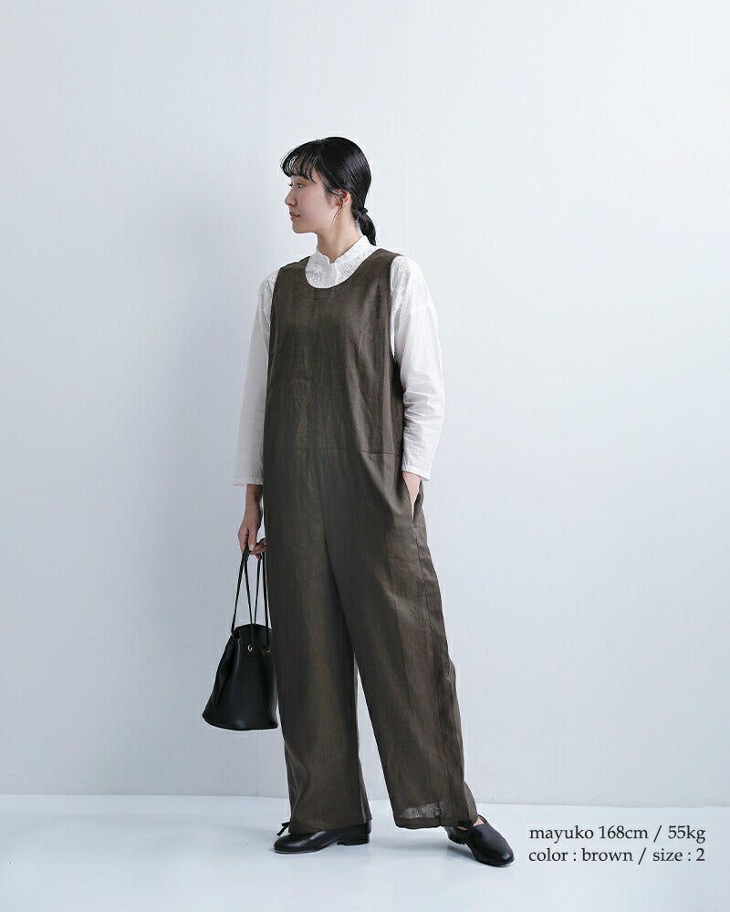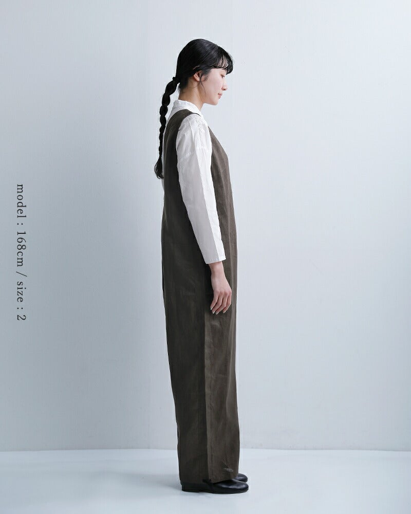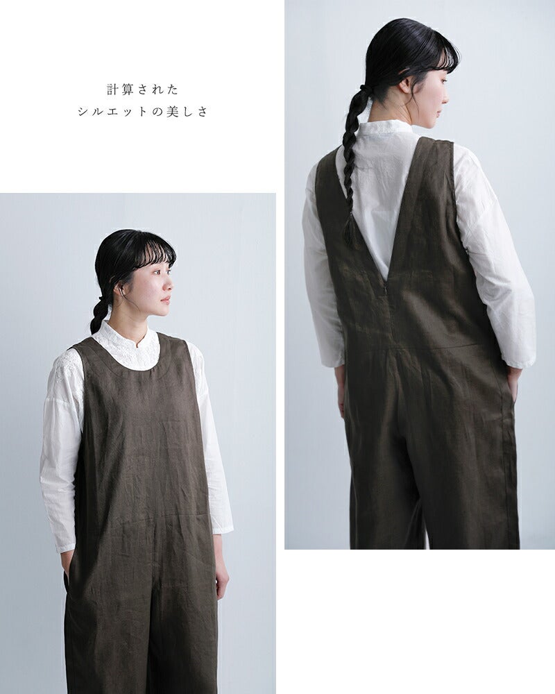 柔らかな光沢が美しいリネンを贅沢に使用した計算されたシルエットのサロペット Honnete オネット リネン サロペット ho-26ss-p25 レディース 2026ss新作 春夏【サイズ交換初回無料】