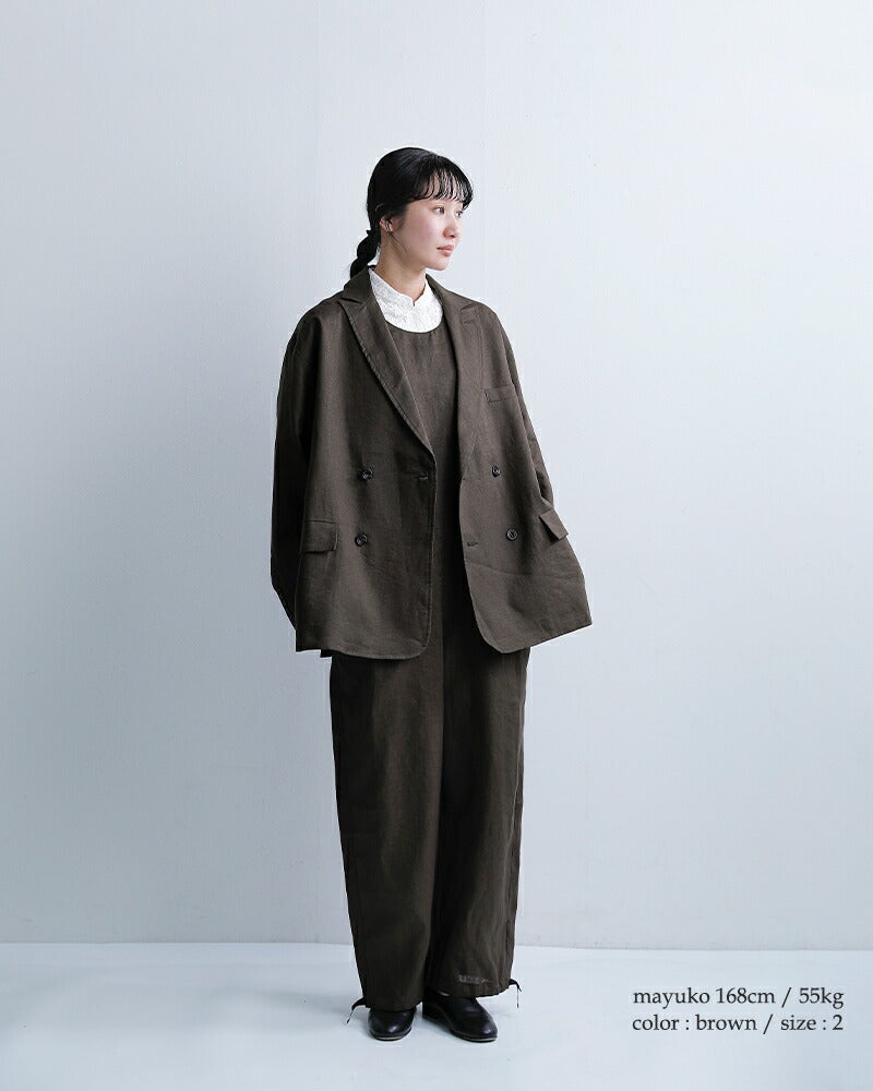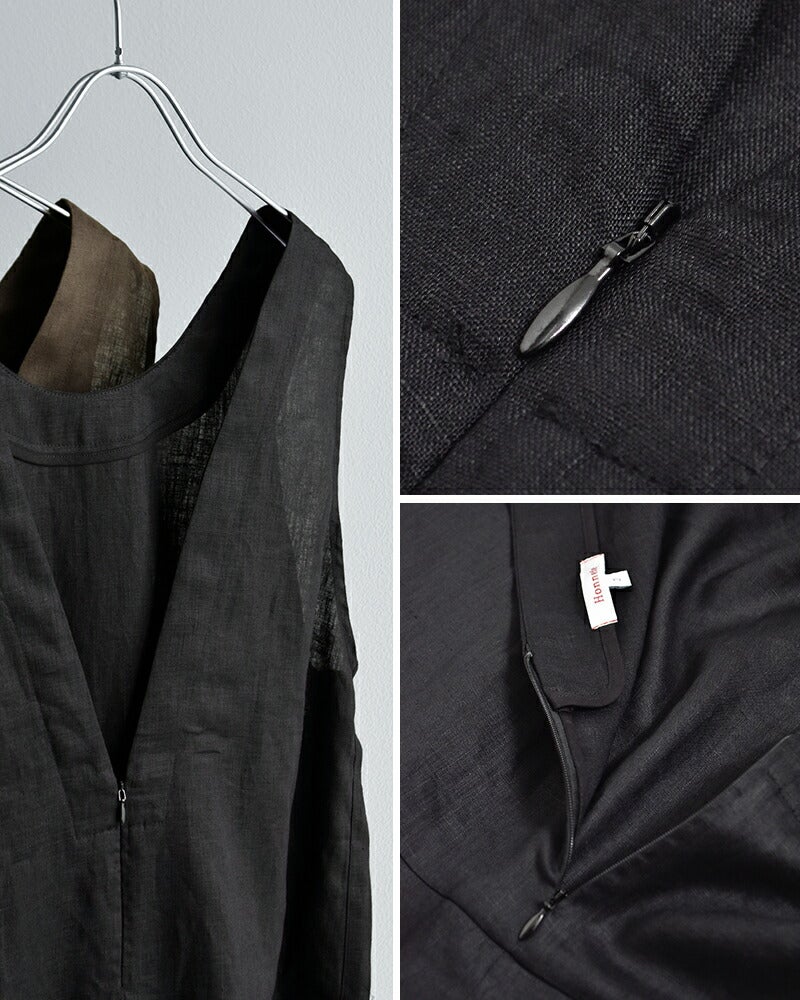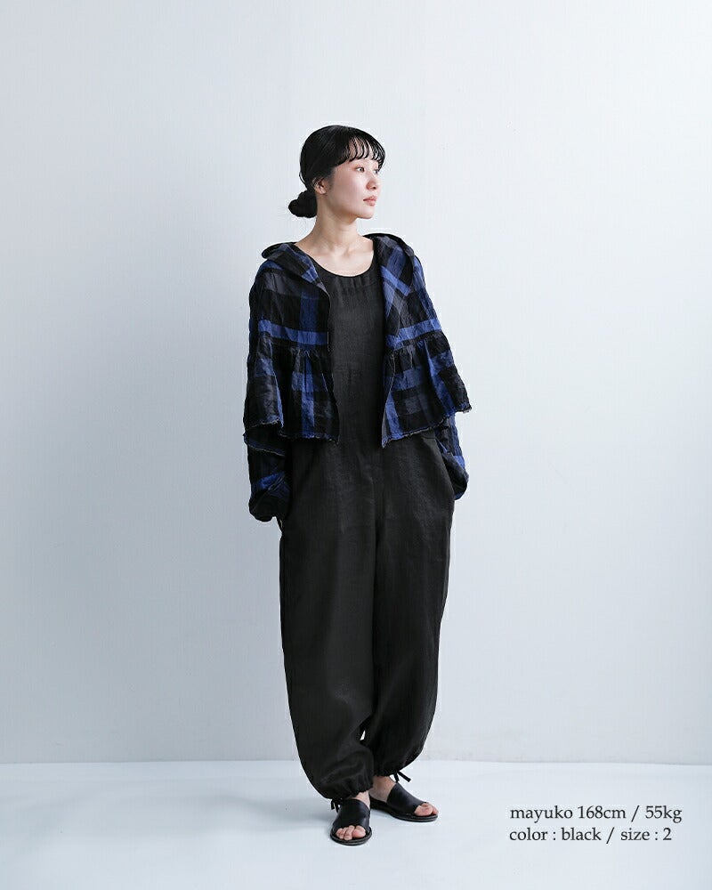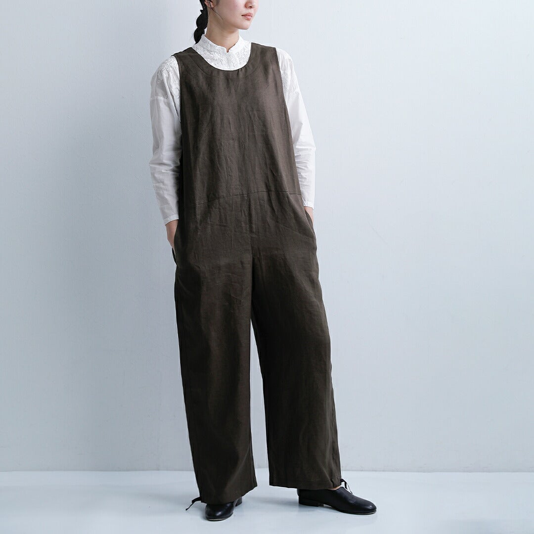 柔らかな光沢が美しいリネンを贅沢に使用した計算されたシルエットのサロペット Honnete オネット リネン サロペット ho-26ss-p25 レディース 2026ss新作 春夏【サイズ交換初回無料】