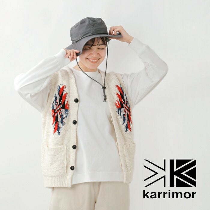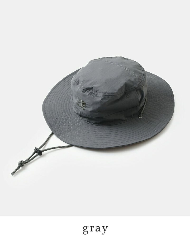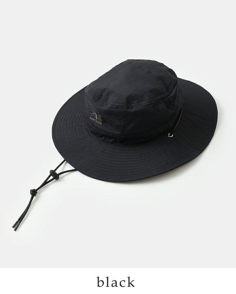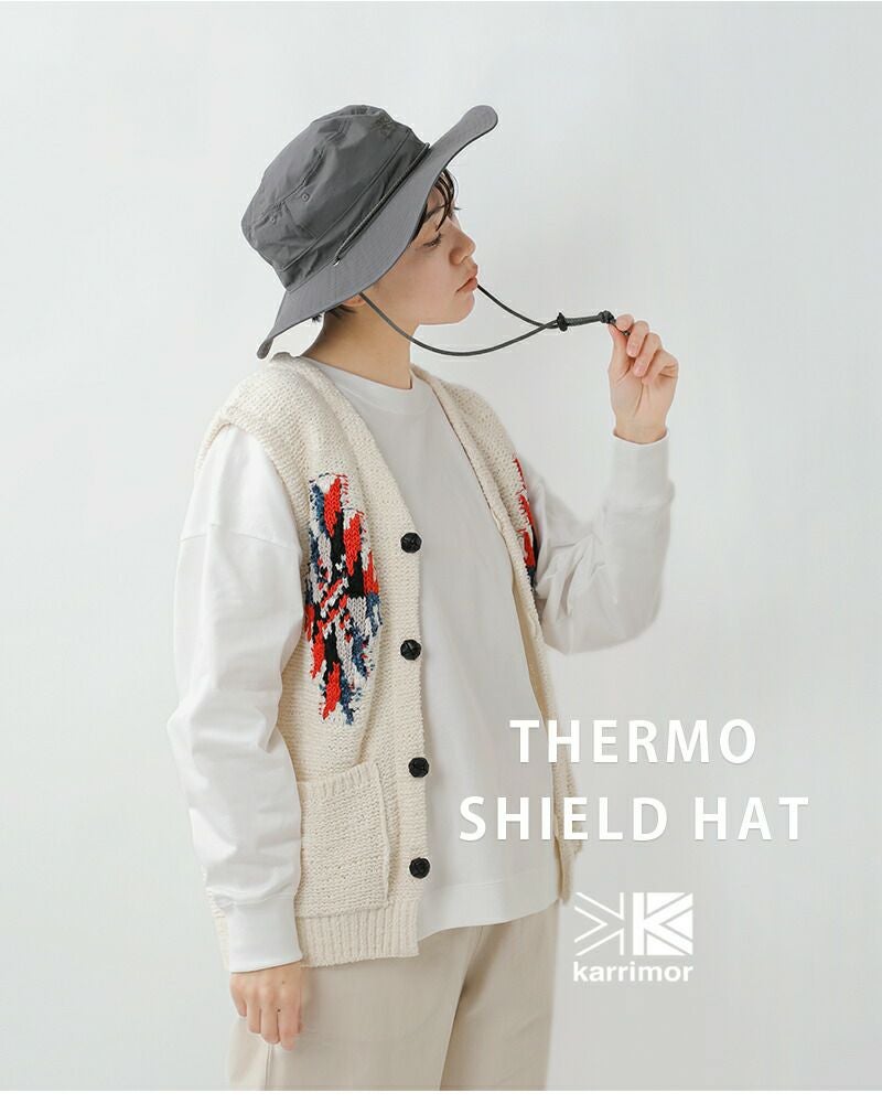 karrimor(カリマーより、遮熱 UVケア 抗菌 防臭 サーモ シールド ハット “thermo shield hat”のご紹介です。丈夫でややハリ感のあるドライタッチなナイロン素材を使用したハット。シンプルながら、UVカットやベンチレーション機能など高い機能性を備えています。広めのツバでしっかりと日差しを防ぎ、調節できるあご紐がついているので風が強い日も安心です。