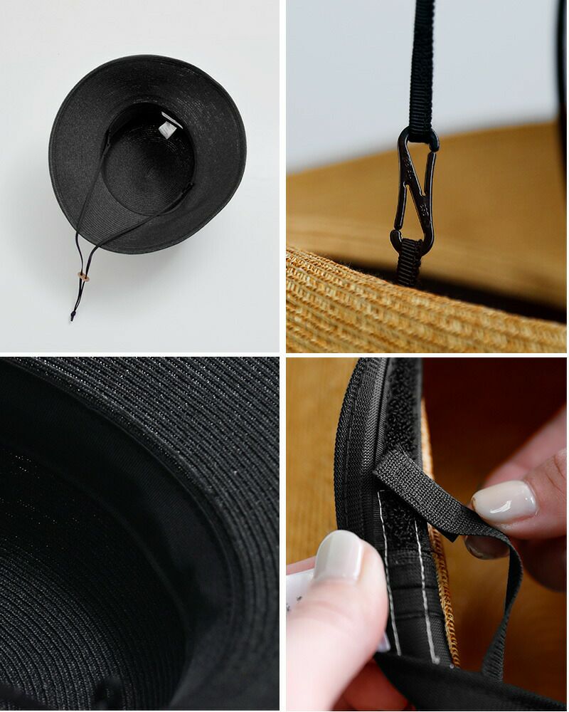 風の強い日でも安心して着用できる顎紐付きデザイン。