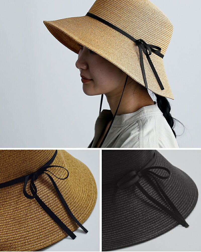 ペーパーブレード素材を使用した、軽やかな被り心地のキャペリンハット。