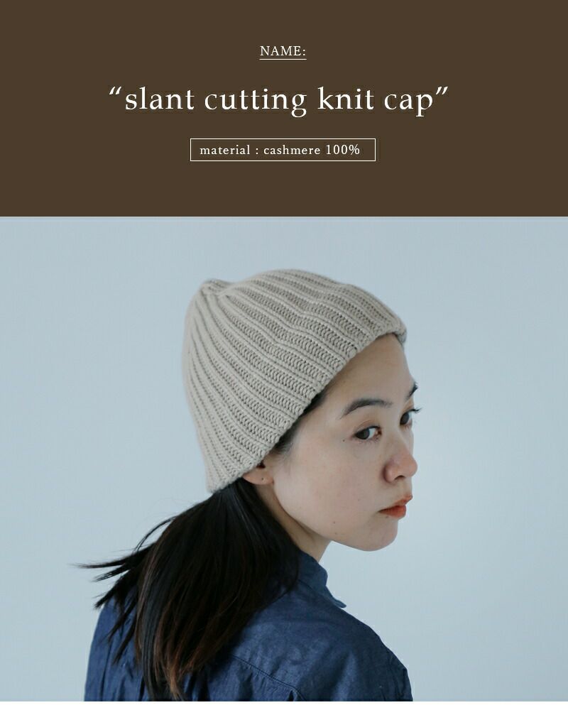 カシミヤ100%スラントカッティングニットキャップ“slantcuttingknitcap”mk-2306