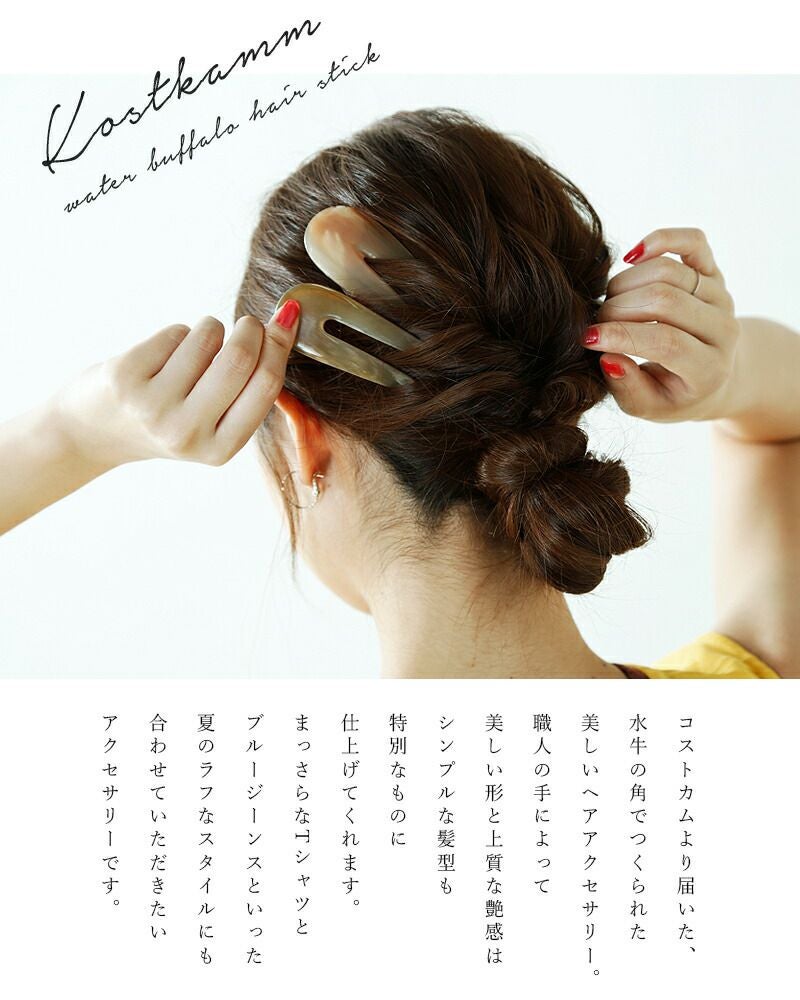 水牛の角を磨き温かみのある形に仕上げたヘアスティック【再入荷】 【ゆうパケット選択可】KOSTKAMM コストカム ウォーターバッファローホーンヘアスティック 9431-ms レディース