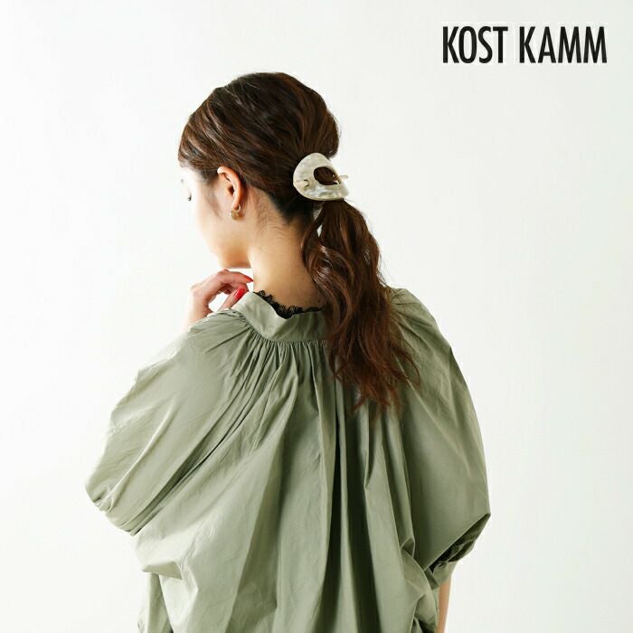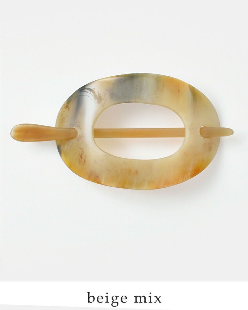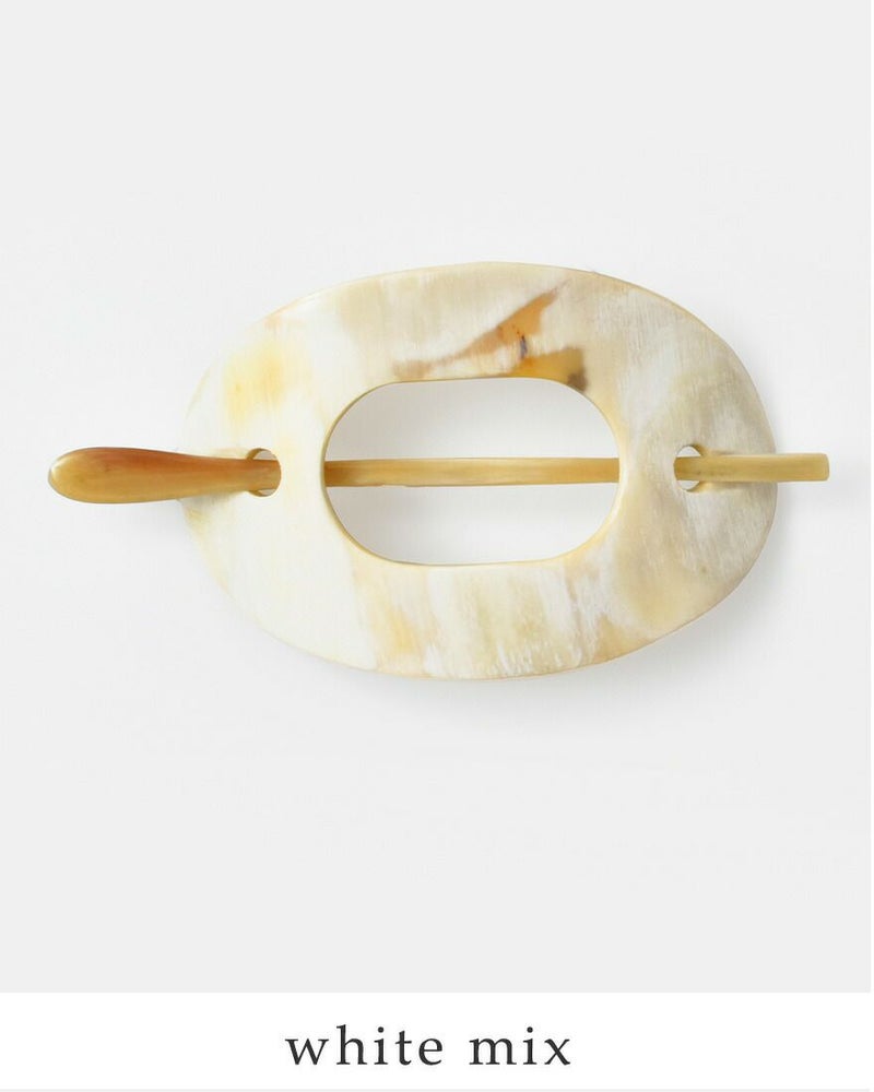 KOSTKAMM(コストカム)のウォーターバッファローホーンサークルマジェステのご紹介です。水牛の骨を削り出し、なめらかに仕上げた美しい質感のマジェステ。簡単につけれて、ヘアスタイルにアクセントを加えてくれる便利なアイテムです。天然の素材の為、ひとつひとつ色や形が異なり、存在感たっぷり。高級感がある見た目に反して軽くて使いやすく、お手頃なプライスも魅力です。