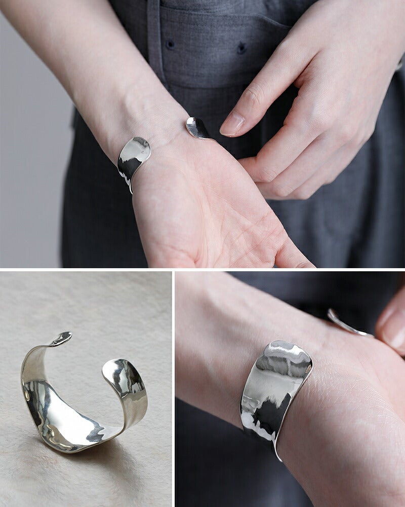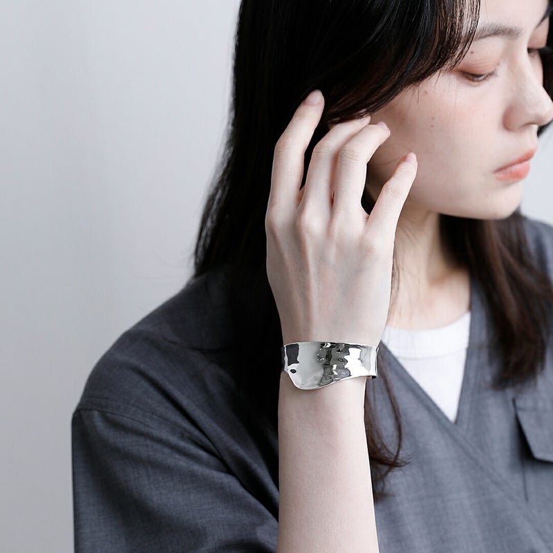 JAMIRAY(ジャミレイ)よりシルバーヴァーグバングル“VAGUEBANGLE”のご紹介です。柔らかな曲線が曖昧さの中にある美を映し出し、静かに揺らぐ海のように形に捉われない自由さを表現するワイドバングル。余韻を残すような佇まいは、身につける人の感覚に訴え、スタイリングにモードな印象を与えてくれる、ミニマルかつ洗練されたデザイン。