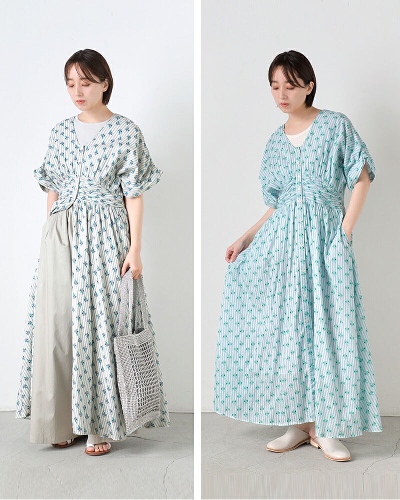 他の画像を見る 半袖フレンチスリーブロング丈マキシ丈ストライプ柄花柄箔プリントポケット付きコットンボイルワンピース 【クーポン対象】ne Quittez pas ヌキテパ コットンボイル ストライプ アネモネ箔プリント フレンチスリーブ ドレス Cotton Voile Stripe Anemone Foil Print French Sleeve Dress 010561ws2 レディース 2026ss新作 春夏 ¥ 30,800 ¥ 30,800 税込 クーポン対象 カートに入れる お気に入りに登録する