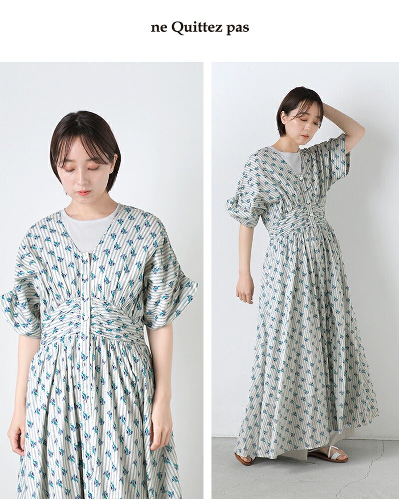 他の画像を見る ストライプ柄を織りで表現コットンジャガード生地繊細なスモールフラワープリントを重ねた奥行きのある表情魅力の一着 【クーポン対象】ne Quittez pas ヌキテパ コットン ジャガードストライプ スモールフラワープリント ウエストギャザー ドレス Cotton Jacquard Stripe Small Flower Print Waist Gather Dress 010461wx1 レディース 2026ss新作 春夏 ¥ 29,700 ¥ 29,700 税込 クーポン対象 販売期間 2026/04/28 10:00 〜 カートに入れる お気に入りに登録する