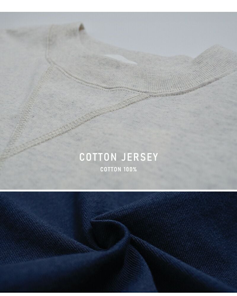 ミドルウェイトの程よい厚みを持つコットン天竺素材を使用。適度なハリ感があり、身体のラインを拾いにくいのが特徴です。 米綿ならではのドライなタッチで、さらりとした肌触り。カジュアルな風合いの中に、ほどよい上品さも感じられる生地感に仕上がっています。