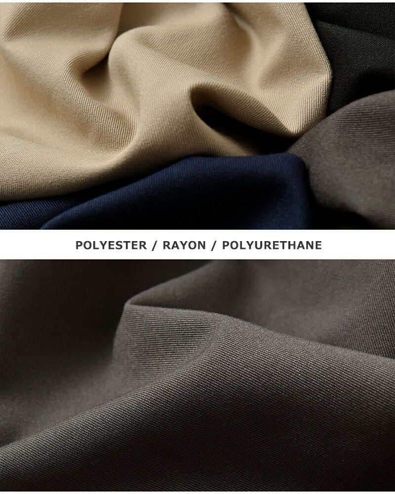 ●ポリエステル80% / レーヨン18% / ポリウレタン2% 表面感がソリッドな梳毛調素材はドレープの落ち感が美しく、体のシルエットも拾わず安心です。