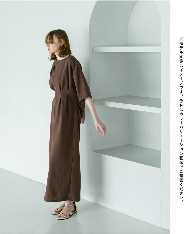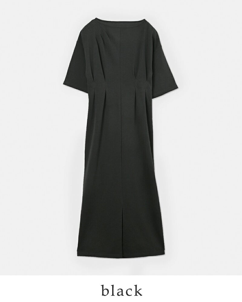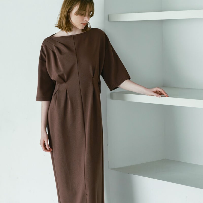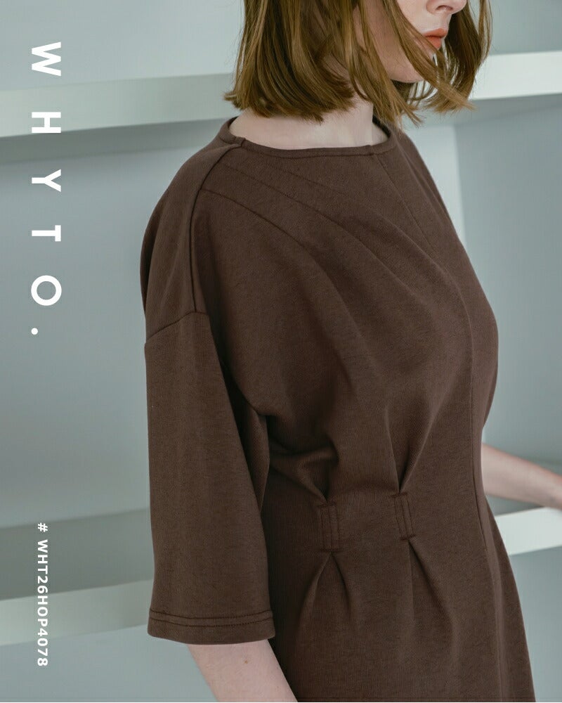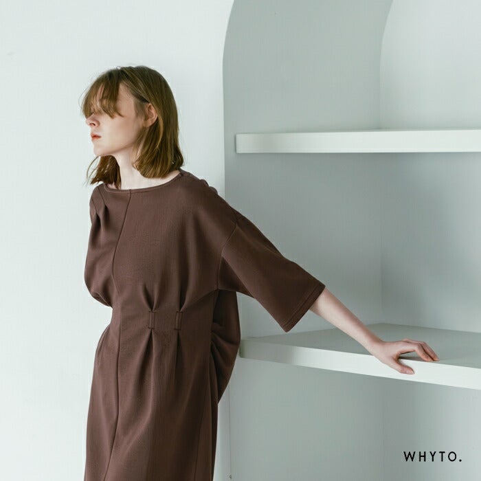whyto(ホワイト)より、アシンメトリー タック ドレス “asymmetry tuck dress”のご紹介です。タックとドレープで変化をつけたカットソードレス。肩からアシンメトリーにタックを入れて胸元に流れを作っています。ウエストマーク位置にタックをとって、すっきりしたフォルムに仕上げています。シンプルに見えて、デザインの要素が詰まったこだわりのドレスです。