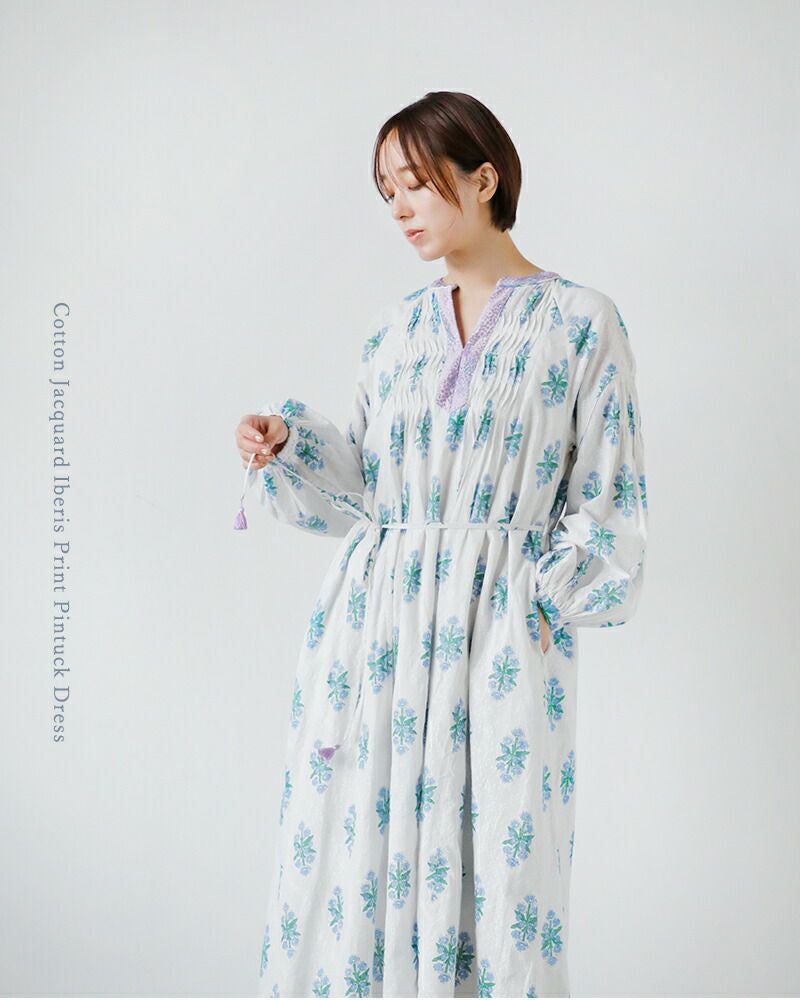 コットンジャガードイベリスプリントピンタックドレスCottonJacquardIberisPrintPintuckDress010461wa1