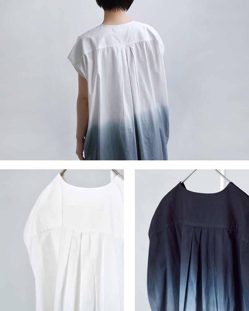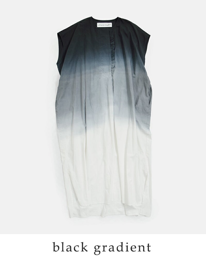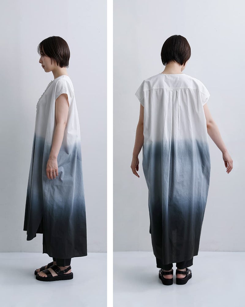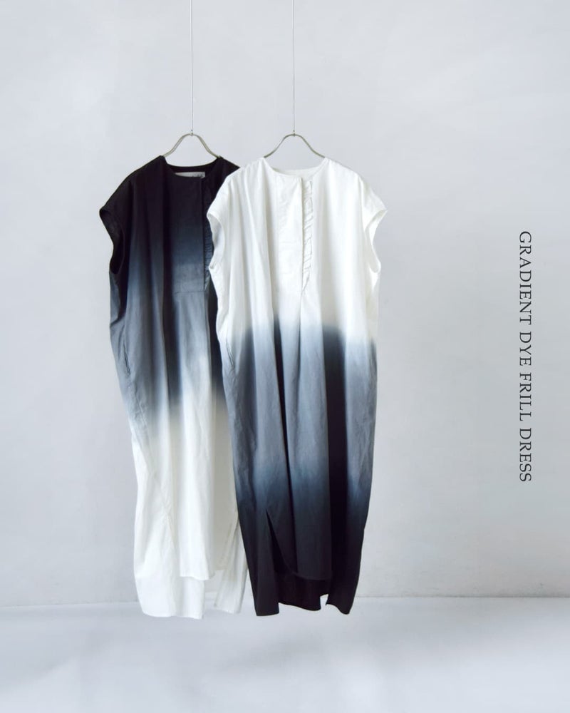 Si-Si-Si(スースースー)より、コットングラデーションフリルワンピース GRADIENT DYE FRILL DRESSのご紹介です。グラデーションカラーが印象的なフリルワンピース。美しく染め上げられた段染めデザインが、シンプルながらも印象的な存在感を放ちます。ゆったりとしたボックスシルエットに、フロントのさりげないフリルがアクセント。モノトーンのグラデーションが、大人の女性にふさわしい洗練された雰囲気を演出します。