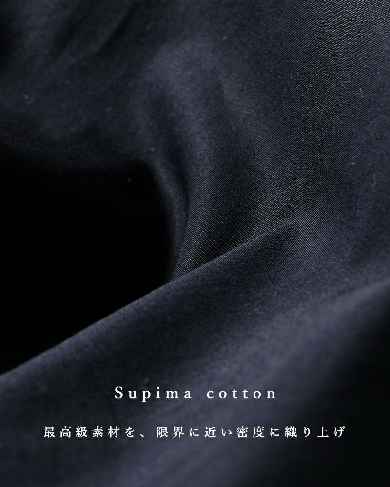 コットン 100% しなやかで適度な光沢感を放つスーピマコットンを用いて限界に近い密度に織り上げたクリアな表情とハリ感が特徴のハイカウントブロードを使用。 しっかりとした生地感で、夏以外には季節感を持った着こなしが可能です。