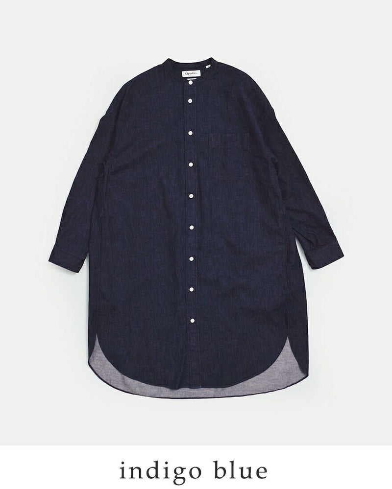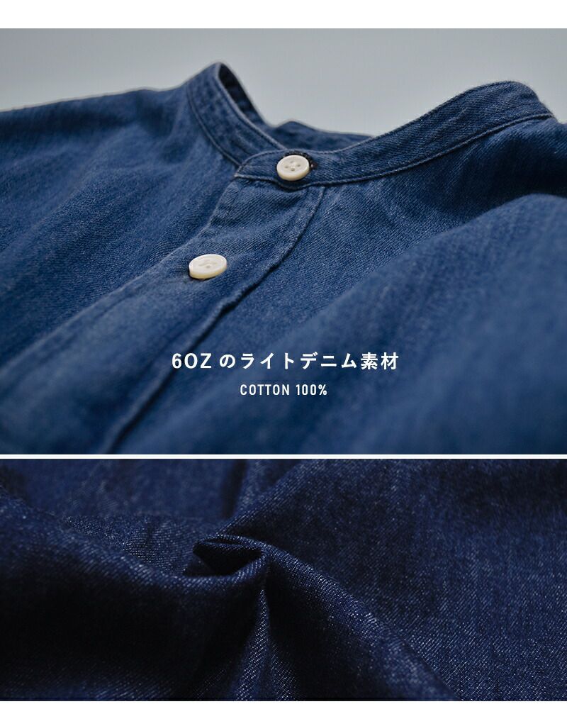 ライトデニムバンドカラーシャツワンピースgy-g0064sdm