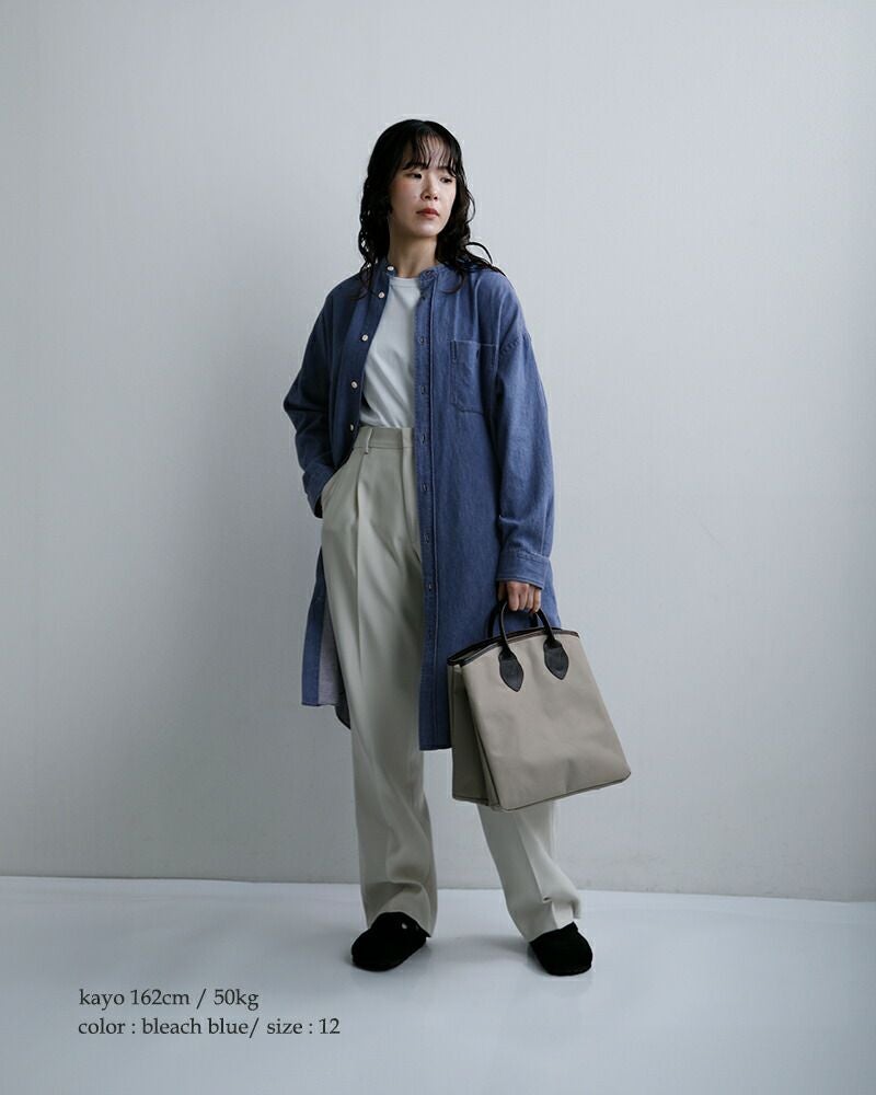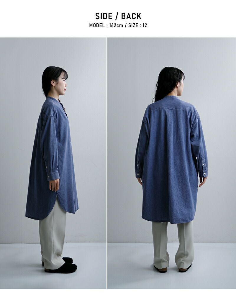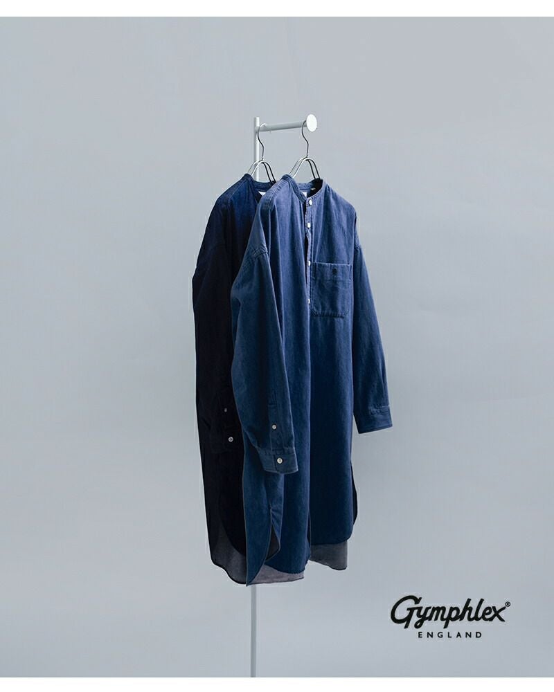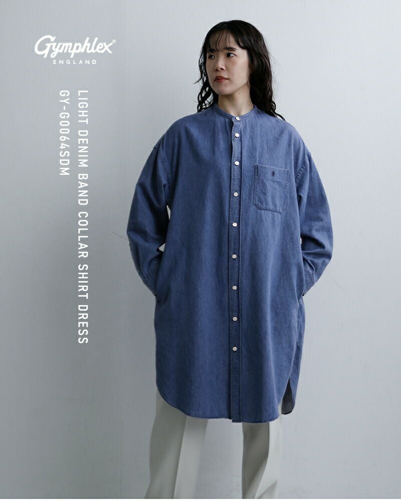 Gymphlex(ジムフレックス)より、ライトデニム バンドカラー シャツワンピースのご紹介です。