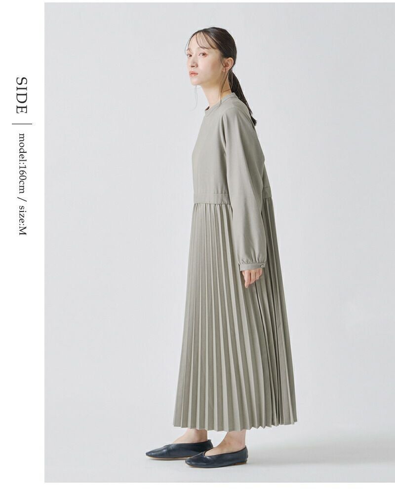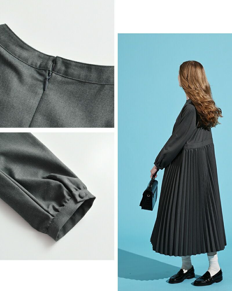 kelen(ケレン)より、アコーディオンプリーツ ワンピース “RELI”をご紹介します。繊細なアコーディオンプリーツデザインを取り入れたワンピースです。上品な表面感のポリエステル・レーヨン素材を使用しています。ウエストに帯を配し、その下にたっぷりとアコーディオンプリーツを施しました。動くたびに揺れるスカートが女性らしさを演出してくれます。さりげないバンドカラーや袖口のギャザーが上品な1枚。パールをつけてお出かけシーンや、ベストやニットアイテムを合わせてカジュアルに着こなすのも楽しい1枚。