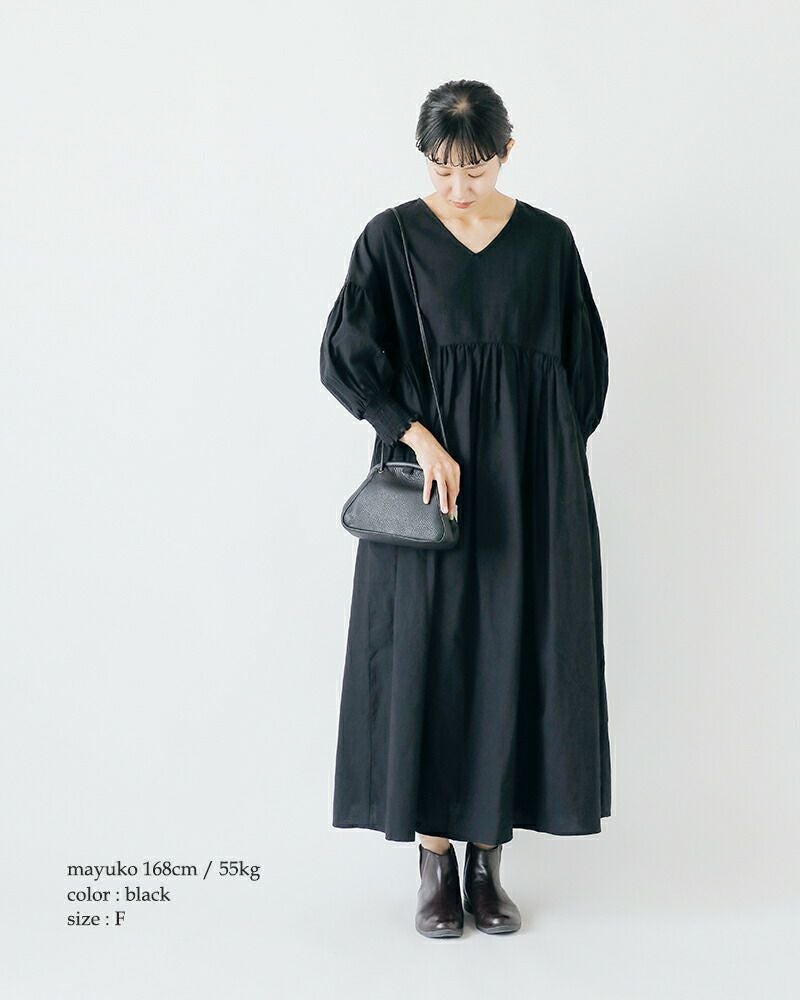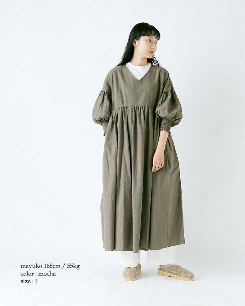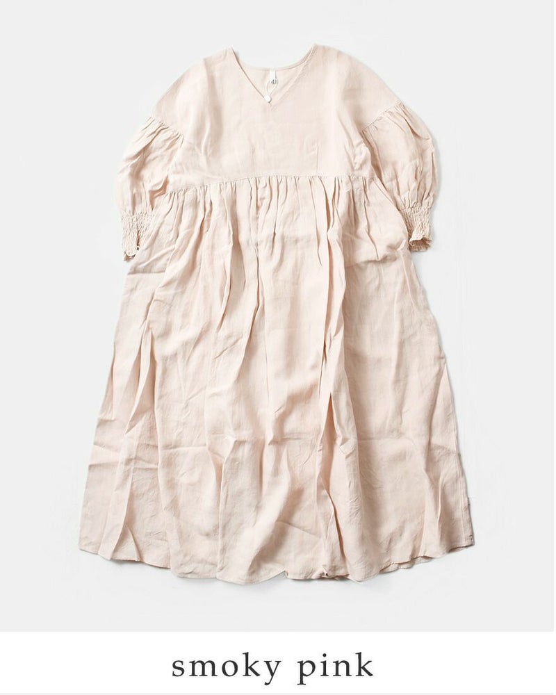 トリプルワッシャー加工を施したリネン素材が魅力の、Vネックロングワンピース。