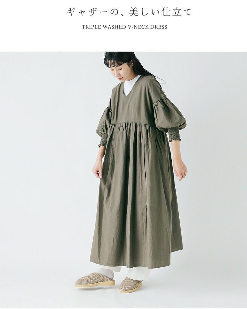 トリプルワッシャーVネックワンピースut243op012